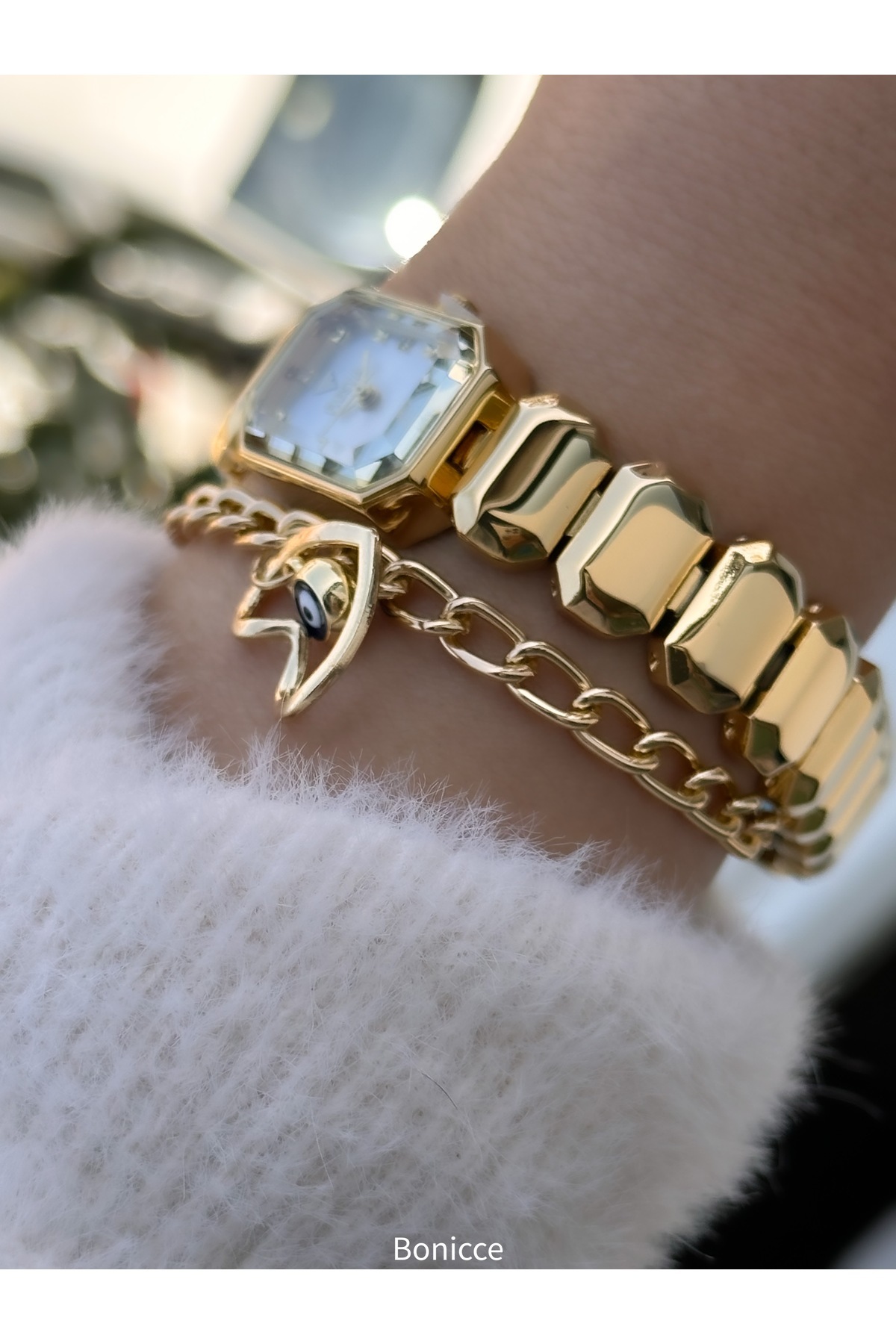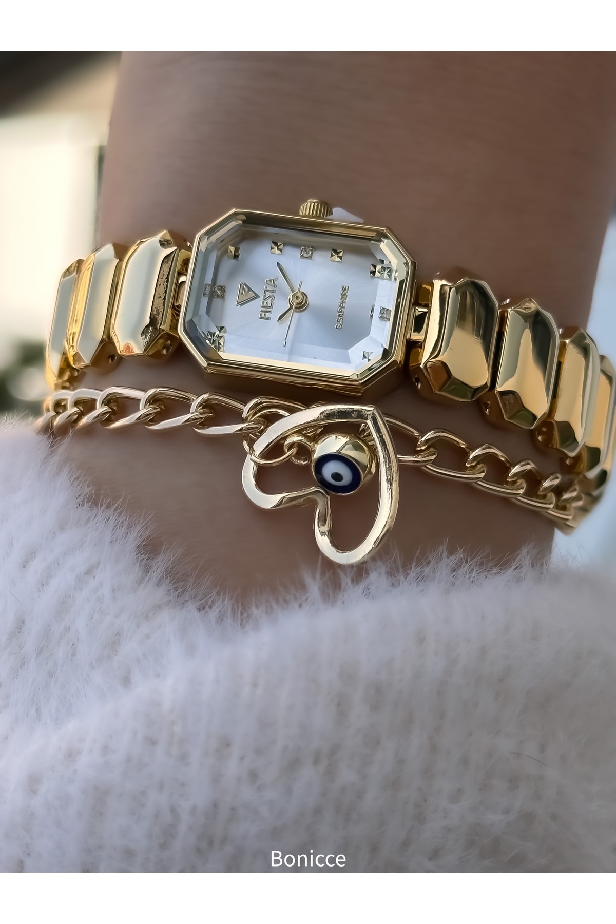 Vintage Model, Sarı Renk Çelik Kordon, VIP Kadın Kol Saati Bileklik Hediyeli Vintage Model, Sarı Renk Çelik Kordon, VIP Kadın Kol Saati Bileklik Hediyeli BNC-KHCH تک سایز