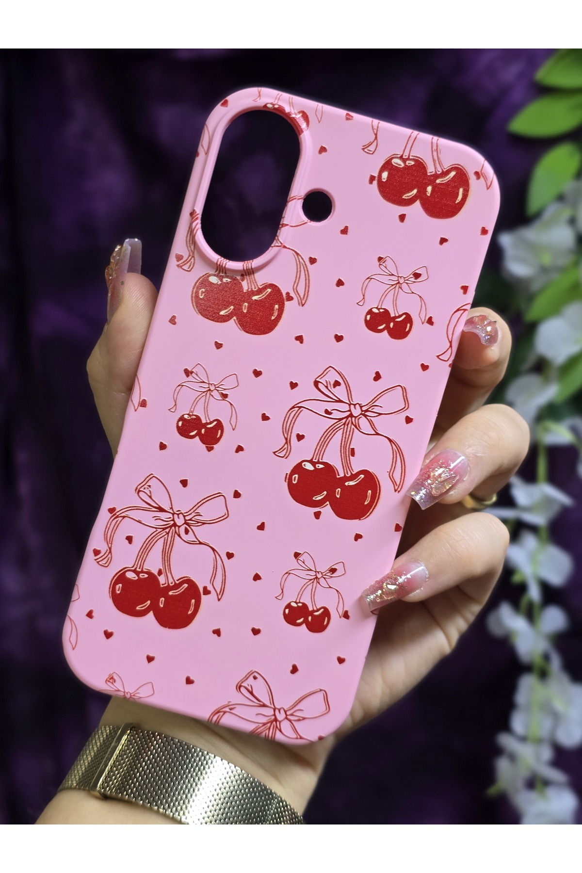 iPhone 17 Uyumlu İçi Kadife Kiraz Baskılı Pembe Telefon Kılıfı iPhone 17 Uyumlu İçi Kadife Kiraz Baskılı Pembe Telefon Kılıfı ıp17mgc تک سایز