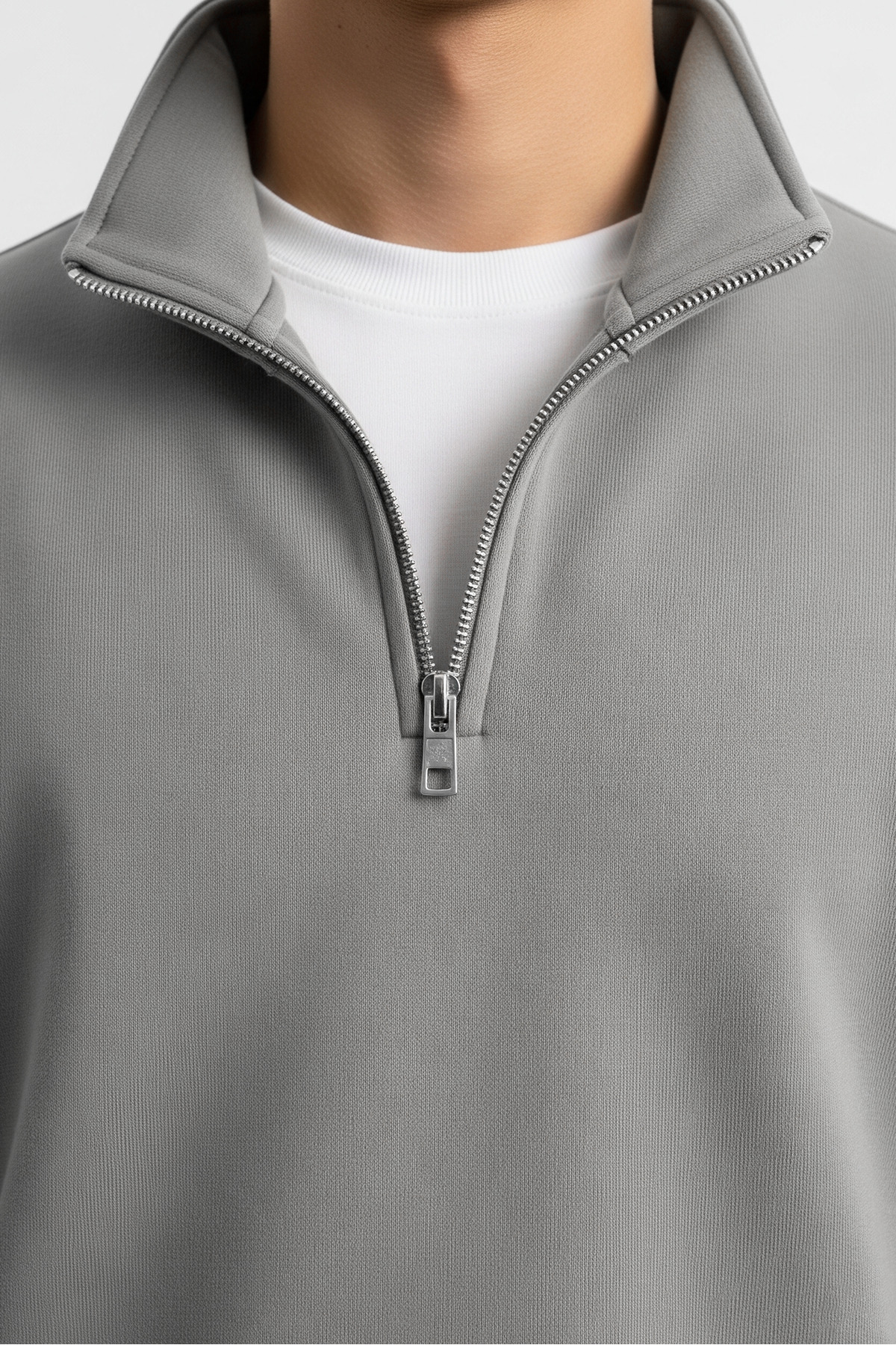 Erkek Basic Gri Yarım Fermuarlı Sweatshirt Erkek Basic Gri Yarım Fermuarlı Sweatshirt Ayna-91506CMBN 2XL