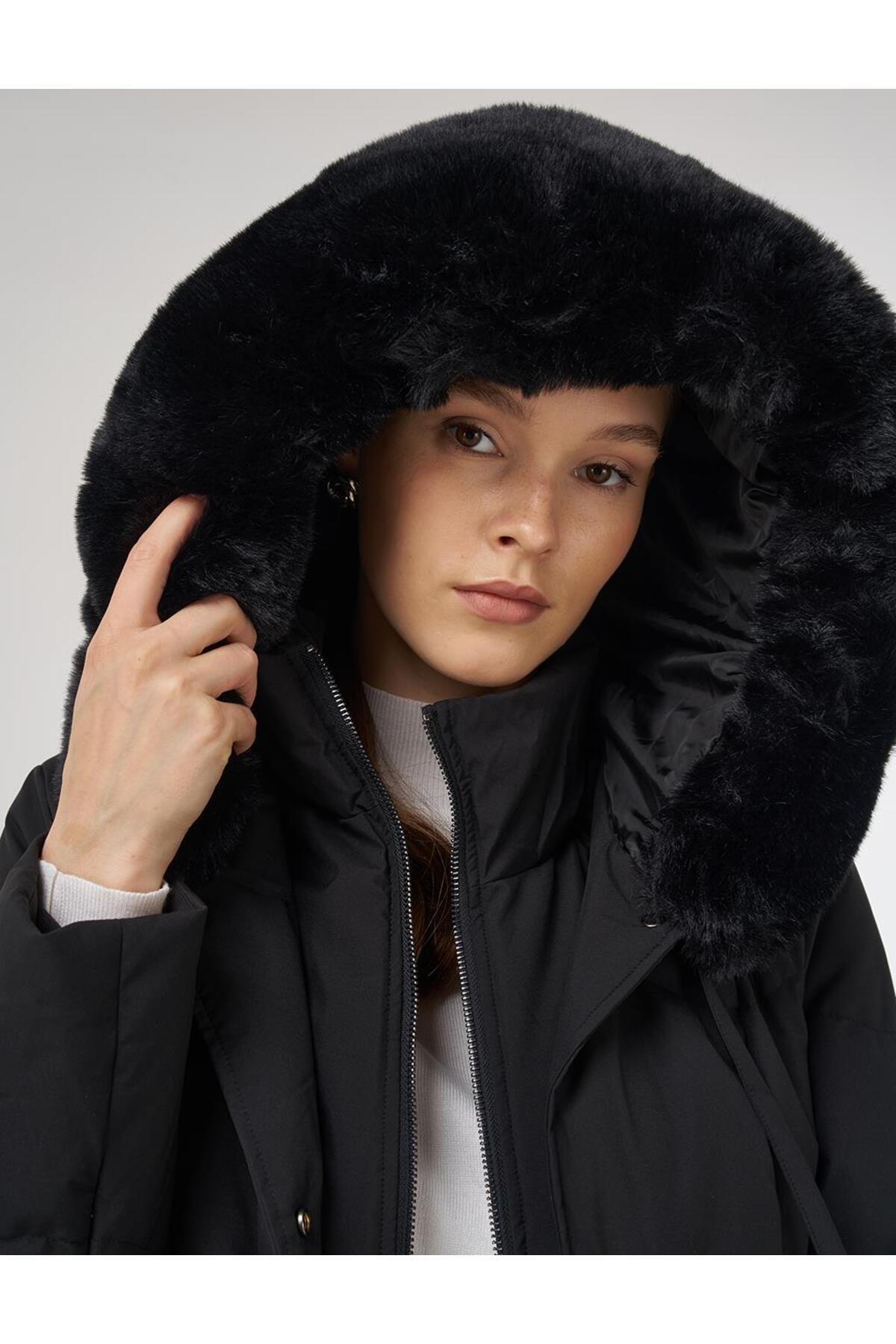 Kapüşon Detaylı Kaz Tüyü Mont Siyah Kapüşon Detaylı Kaz Tüyü Mont Siyah KA-A25-27019 44