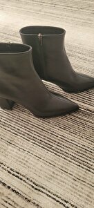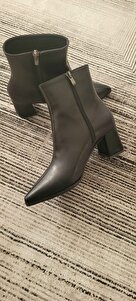 Siyah Deri Sivri Burunlu Kadın Topuklu Bot Siyah Deri Sivri Burunlu Kadın Topuklu Bot İNT 40
