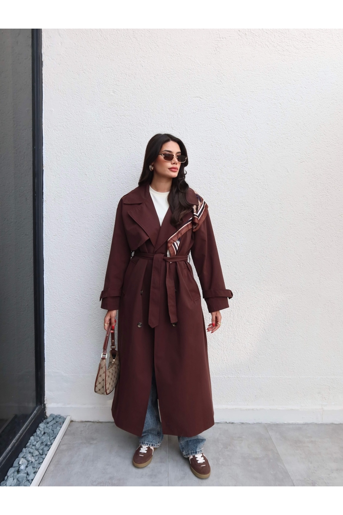 Kruvaze Yaka Kemerli Uzun Trench Kruvaze Yaka Kemerli Uzun Trench EH-5941 L