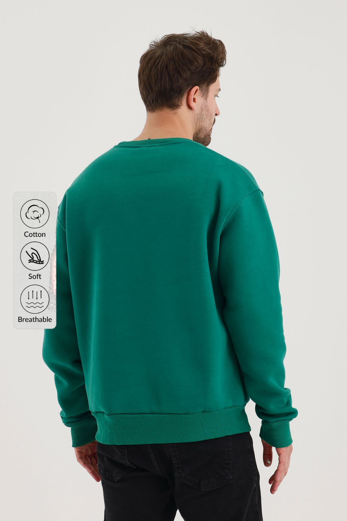 Erkek Bisiklet Yaka Salaş Yeşil Sweatshirt Erkek Bisiklet Yaka Salaş Yeşil Sweatshirt Ayna-SWT.0026 2XL