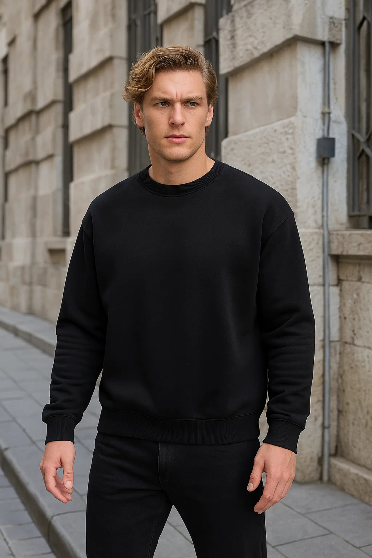 Erkek Bisiklet Yaka Salaş Siyah Sweatshirt Erkek Bisiklet Yaka Salaş Siyah Sweatshirt Ayna-SWT.0026 2XL