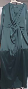 Kadın Zümrüt Yeşili Kruvaze Yaka Kol ve Bel Lastik Büzgülü Drapeli Saten Abiye Elbise Kadın Zümrüt Yeşili Kruvaze Yaka Kol ve Bel Lastik Büzgülü Drapeli Saten Abiye Elbise 202258 2XL