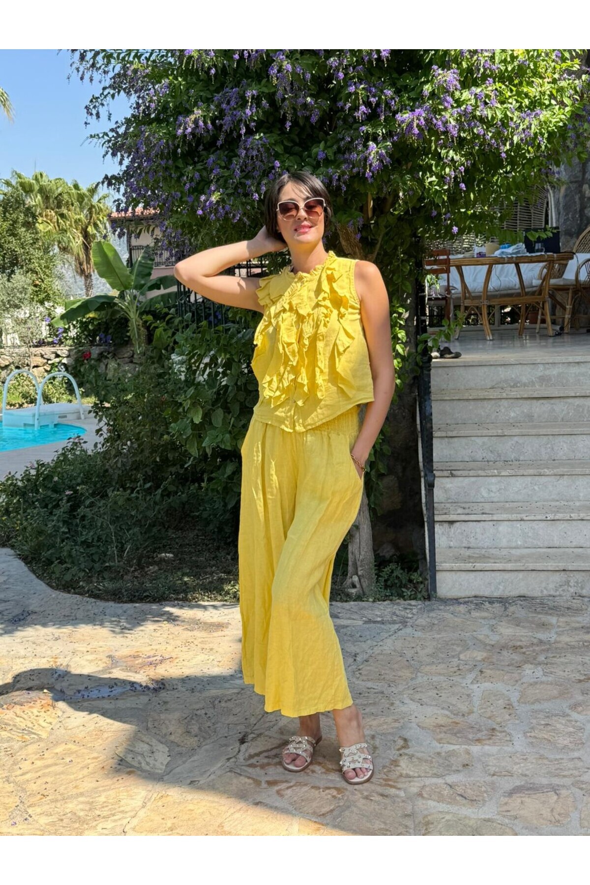 NC14092 Fırfırlı Kolsuz İtalyan Keten Takım Sarı NC14092 Fırfırlı Kolsuz İtalyan Keten Takım Sarı NC14092Sarı Standart