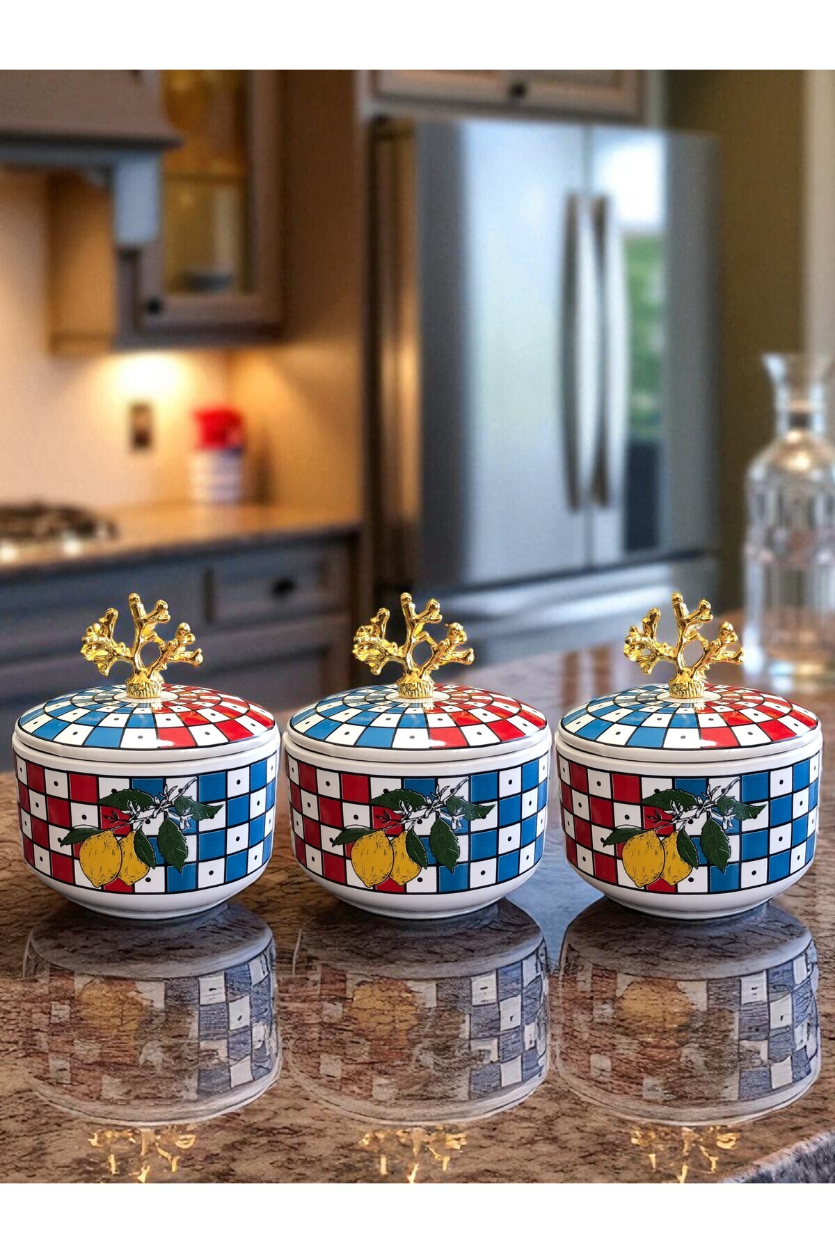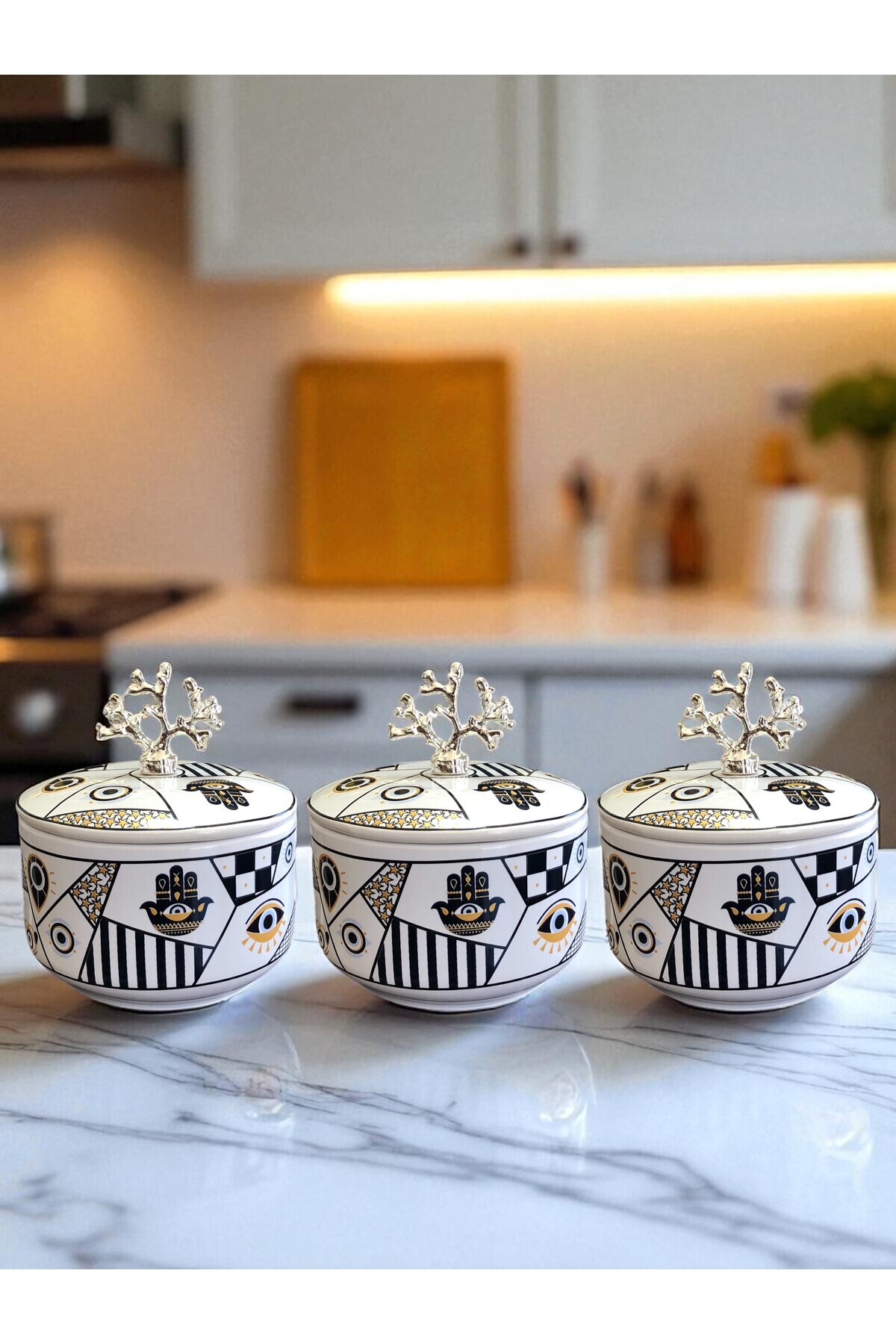 Mutfak Aksesuarı 3 lü Kahvaltılık Saklama Kabı Baharatlık Herm At Desenli Gold - Feray Home Mutfak Aksesuarı 3 lü Kahvaltılık Saklama Kabı Baharatlık Herm At Desenli Gold - Feray Home K1392 تک سایز