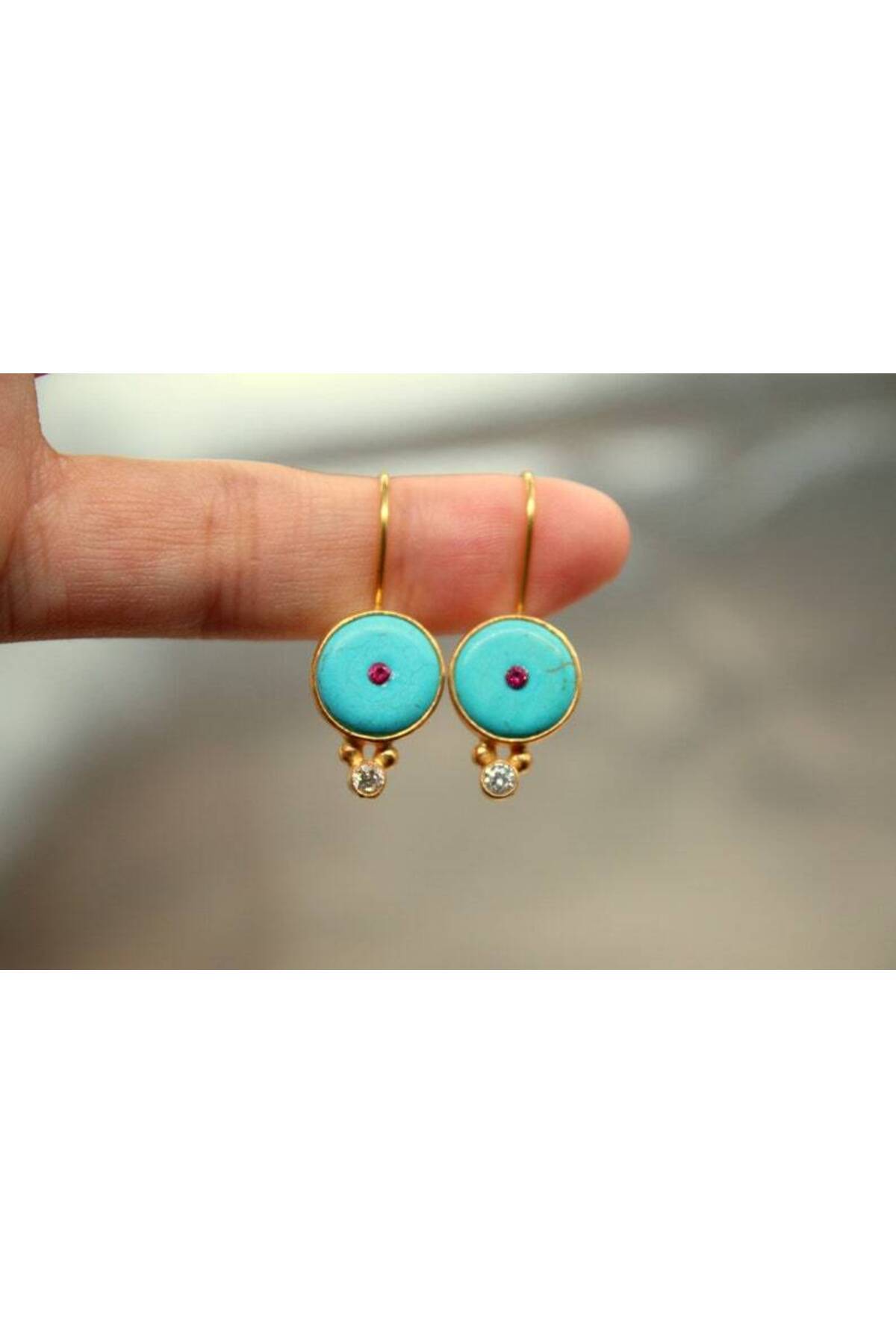 Doğal Turkuaz Taşlı 925 Ayar Gümüş Küpe | El İşi Zarif ve Şık Takı Doğal Turkuaz Taşlı 925 Ayar Gümüş Küpe | El İşi Zarif ve Şık Takı KUP394423 تک سایز