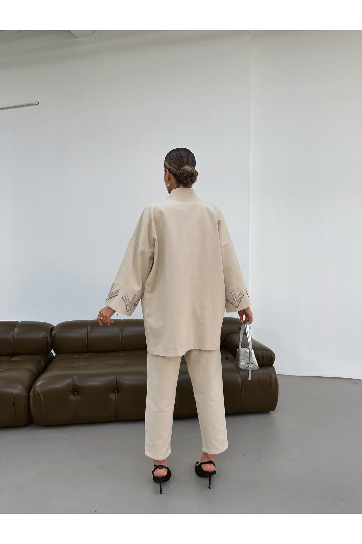 KADIN KOLLARI ÖNÜ BONCUK İŞLEMELİ OVERSİZE KALIP KİMONO KADIN KOLLARI ÖNÜ BONCUK İŞLEMELİ OVERSİZE KALIP KİMONO 2065 Standart