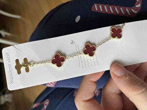 Gold 4 Yaprak Bordo Yonca Şans Çelik Bileklik Gold 4 Yaprak Bordo Yonca Şans Çelik Bileklik yoncabileklik تک سایز