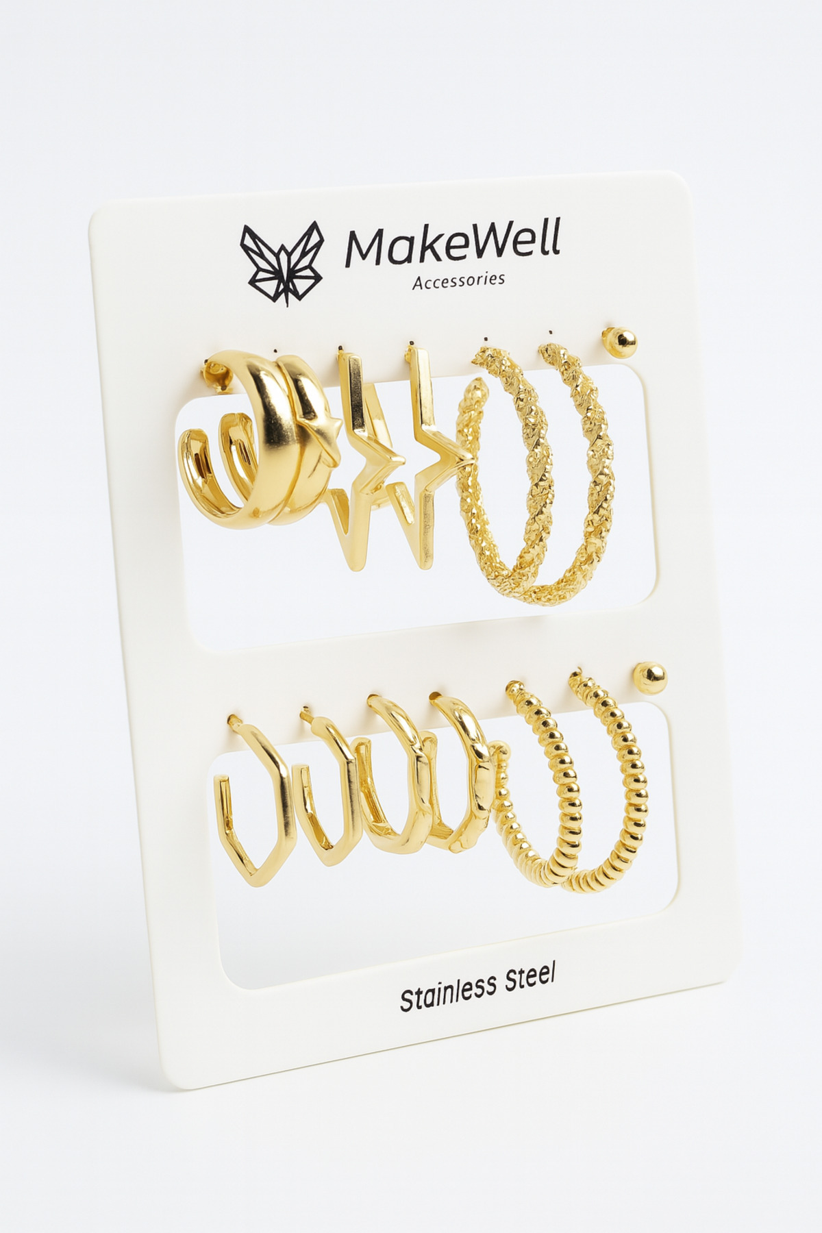 925s Gümüş İğneli Yonca Hilal Kelebek Ayıcık Kalp Çiçekli Gümüş İğneli Çelik Halka Küpeli Set 925s Gümüş İğneli Yonca Hilal Kelebek Ayıcık Kalp Çiçekli Gümüş İğneli Çelik Halka Küpeli Set KE2000,325 تک سایز