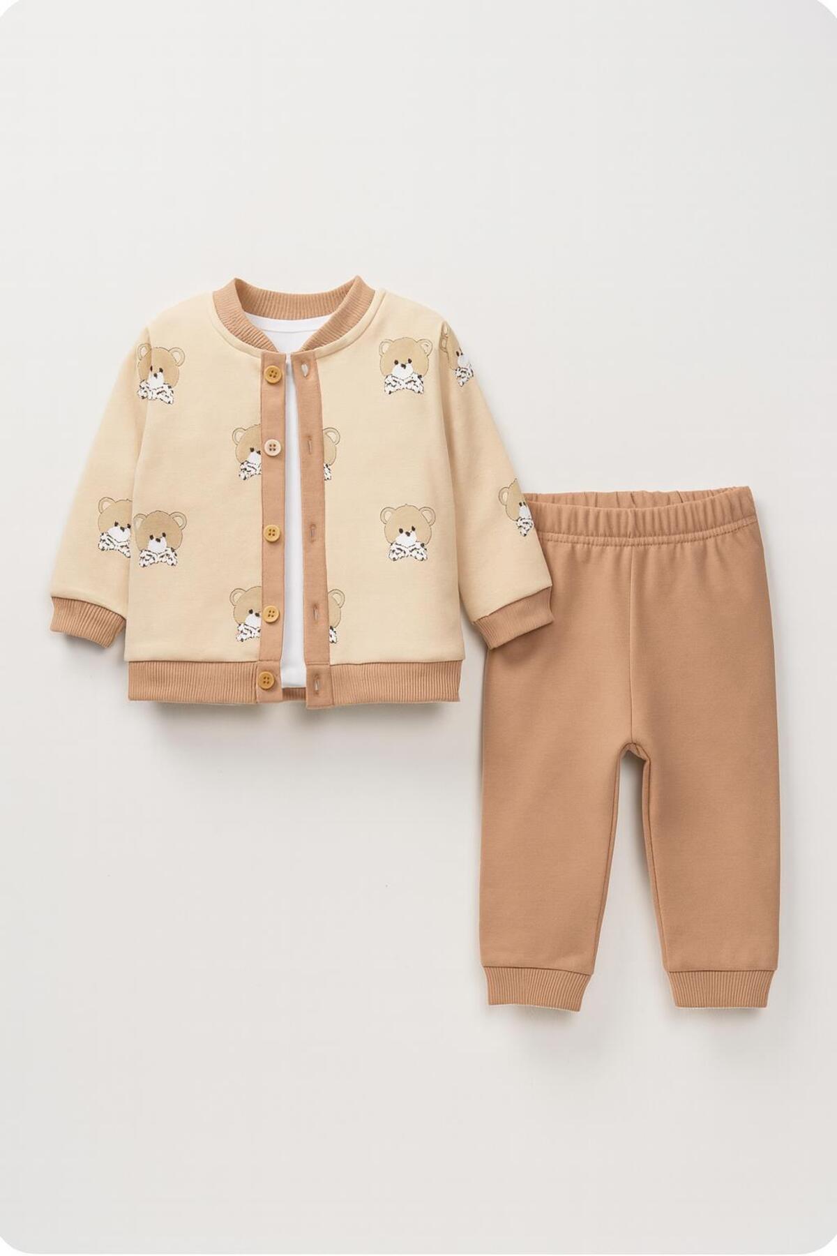 Erkek Bebek Ayıcık Desenli 3'lü Bebek Takım – Bluz ve Pantolon Seti 6119V Erkek Bebek Ayıcık Desenli 3'lü Bebek Takım – Bluz ve Pantolon Seti 6119V 18-24 AY