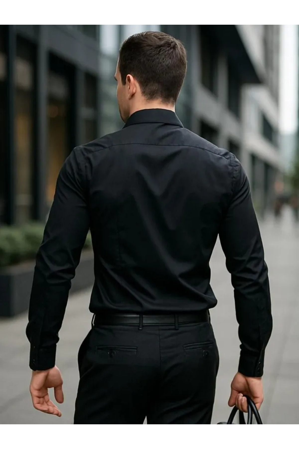Slim Fit Uzun Kollu Kolay Ütü Teri Emen Nefes Alan Doku Kravatlık Siyah Erkek Gömlek Slim Fit Uzun Kollu Kolay Ütü Teri Emen Nefes Alan Doku Kravatlık Siyah Erkek Gömlek ZK1000 5XL
