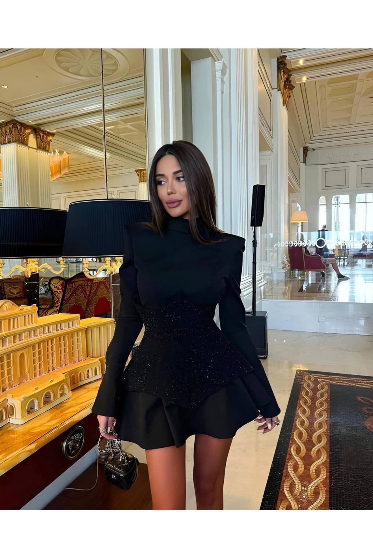 KADIN ETEĞİ VE KOLLARI TÜLLÜ KARE YAKA PRENSES KOL ŞIK ELBİSE KADIN ETEĞİ VE KOLLARI TÜLLÜ KARE YAKA PRENSES KOL ŞIK ELBİSE WTXELBS25K0088168 3XL