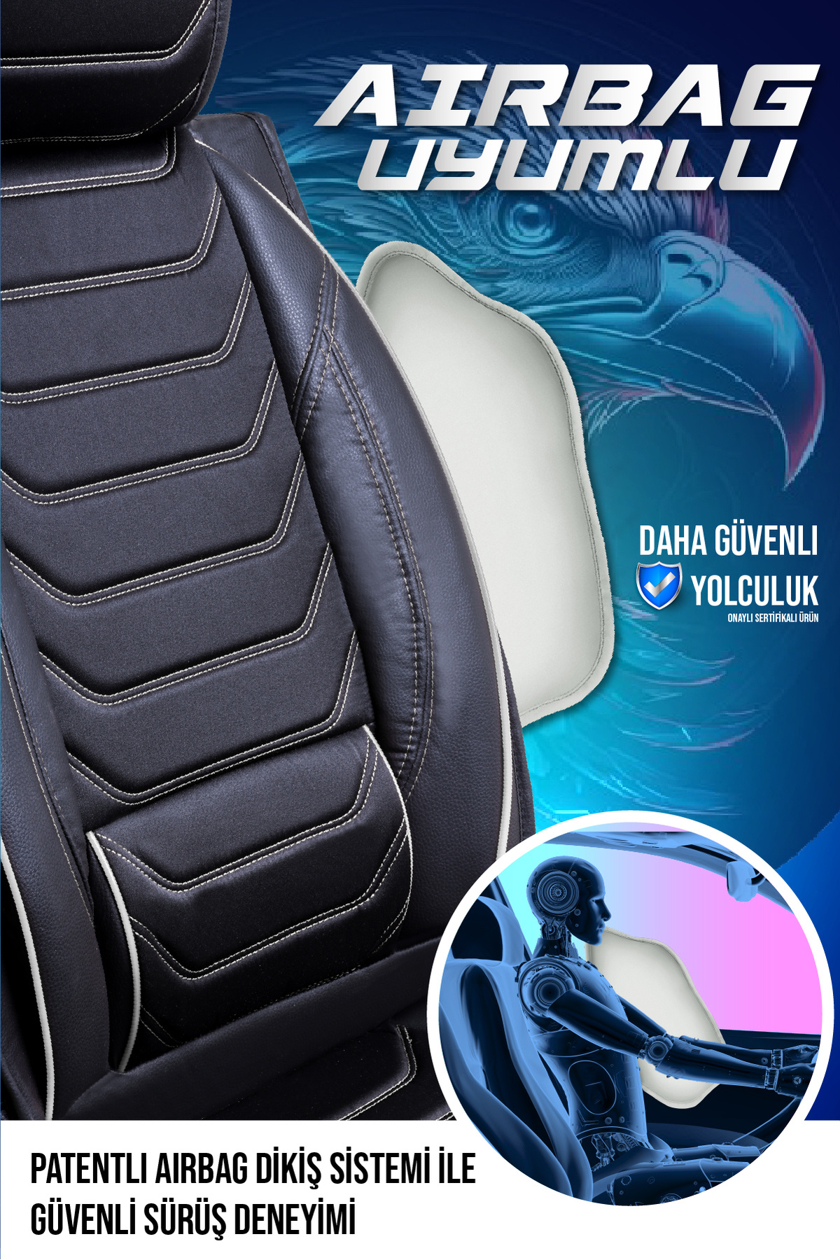Renault Clio 5 Uyumlu Lüx Deri Oto Koltuk Kılıfı Ön Arka Takım Eagle Serisi SİYAH BEYAZ Renault Clio 5 Uyumlu Lüx Deri Oto Koltuk Kılıfı Ön Arka Takım Eagle Serisi SİYAH BEYAZ EAGSERIOKKB001-180 تک سایز