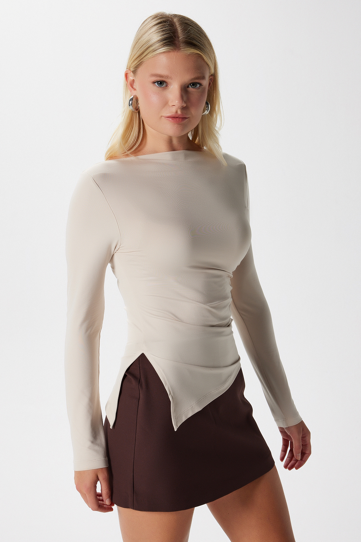 Kadın Most Poliamid Asimetrik Bej Uzun Kol Bluz Kadın Most Poliamid Asimetrik Bej Uzun Kol Bluz 1579 XL