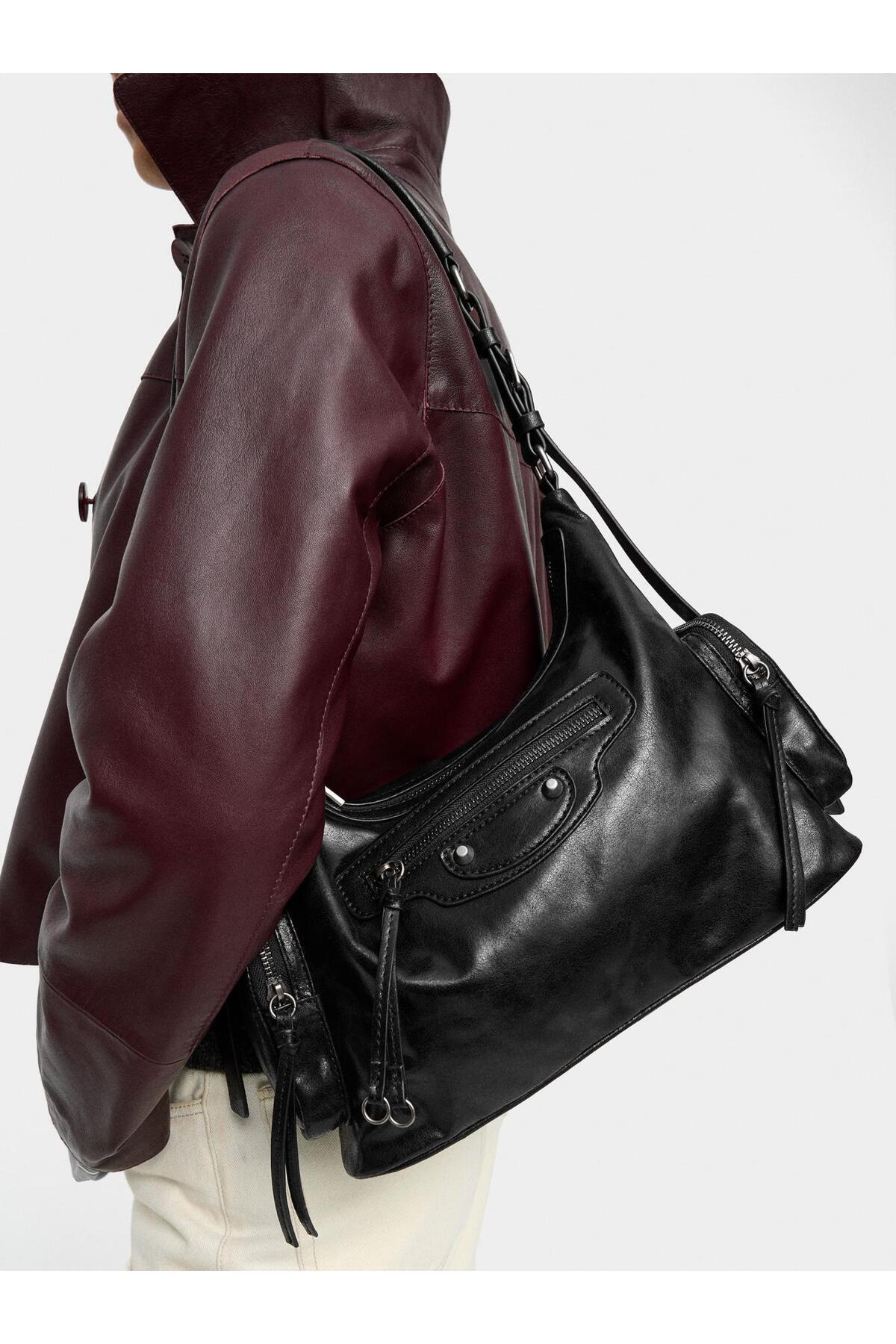Zımba Detaylı ve Deri Görünümlü Çanta Zımba Detaylı ve Deri Görünümlü Çanta 239557 Standart