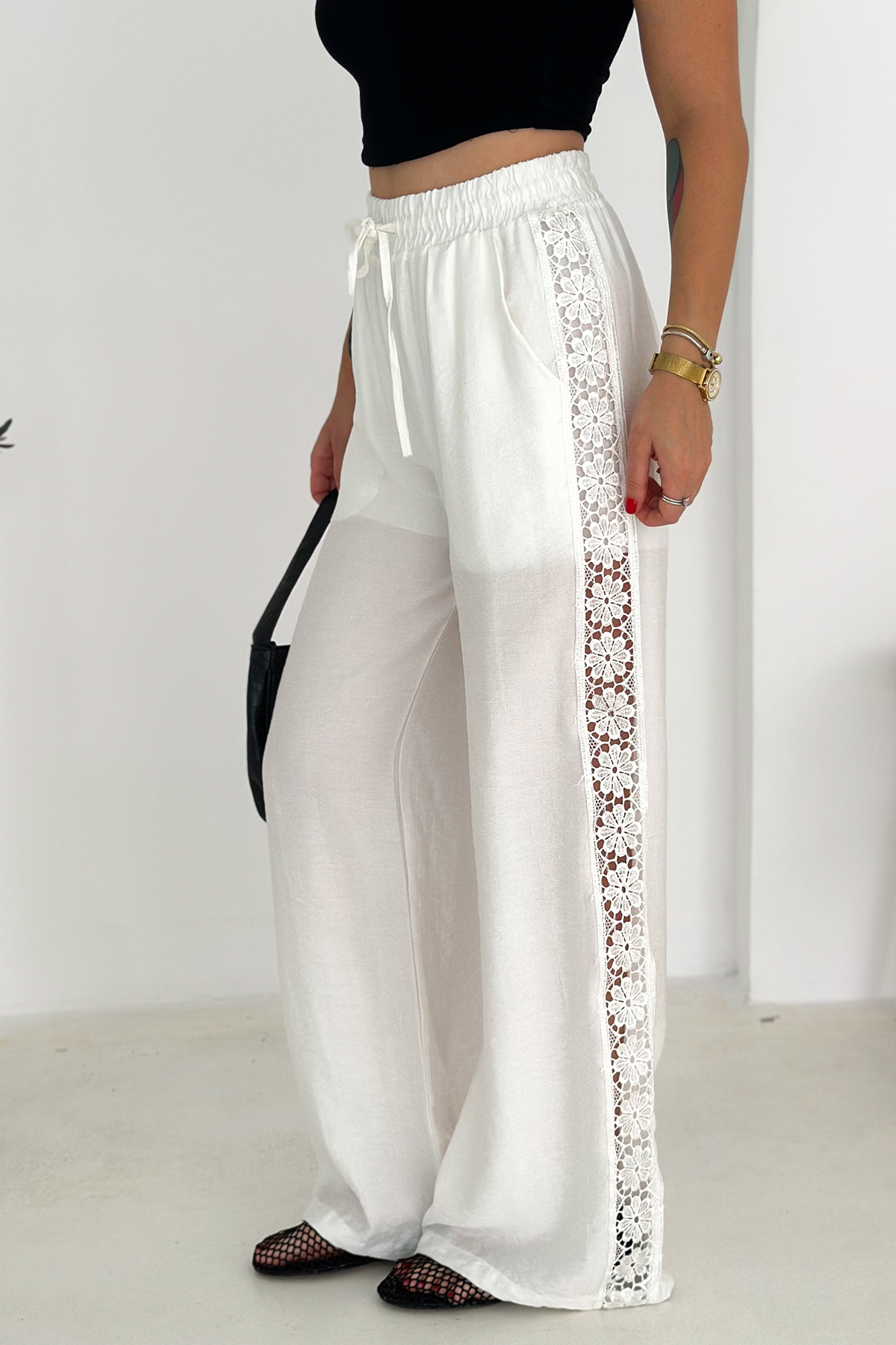 Kadın Yanları Dantel Astarlı Şortlu Pantolon – Hafif & Feminen Stil Kadın Yanları Dantel Astarlı Şortlu Pantolon – Hafif & Feminen Stil 2126-DANTELPNT L