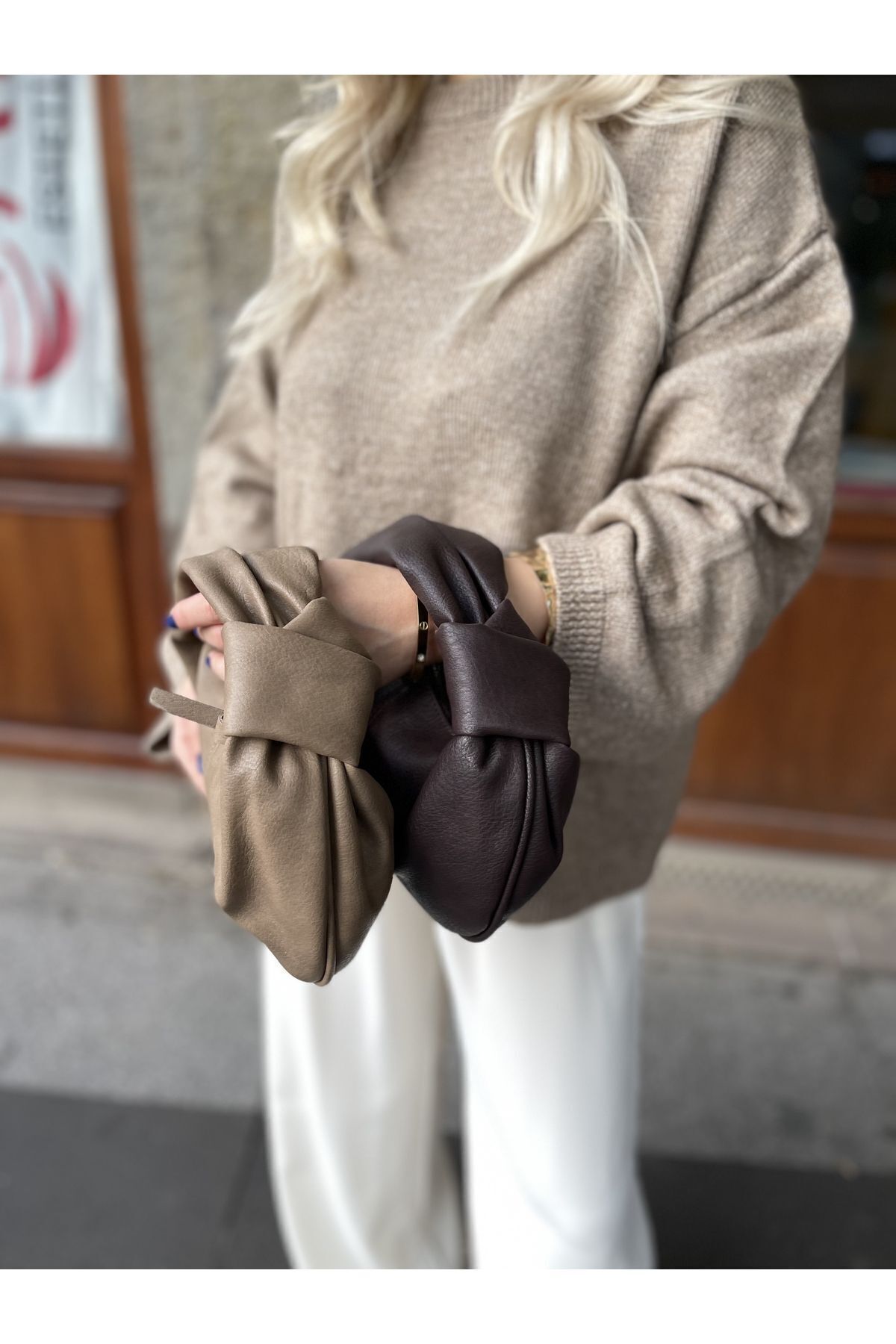 Kadın Acı Kahve Mini Düğümlü El Çantası Kadın Acı Kahve Mini Düğümlü El Çantası 23355 Standart