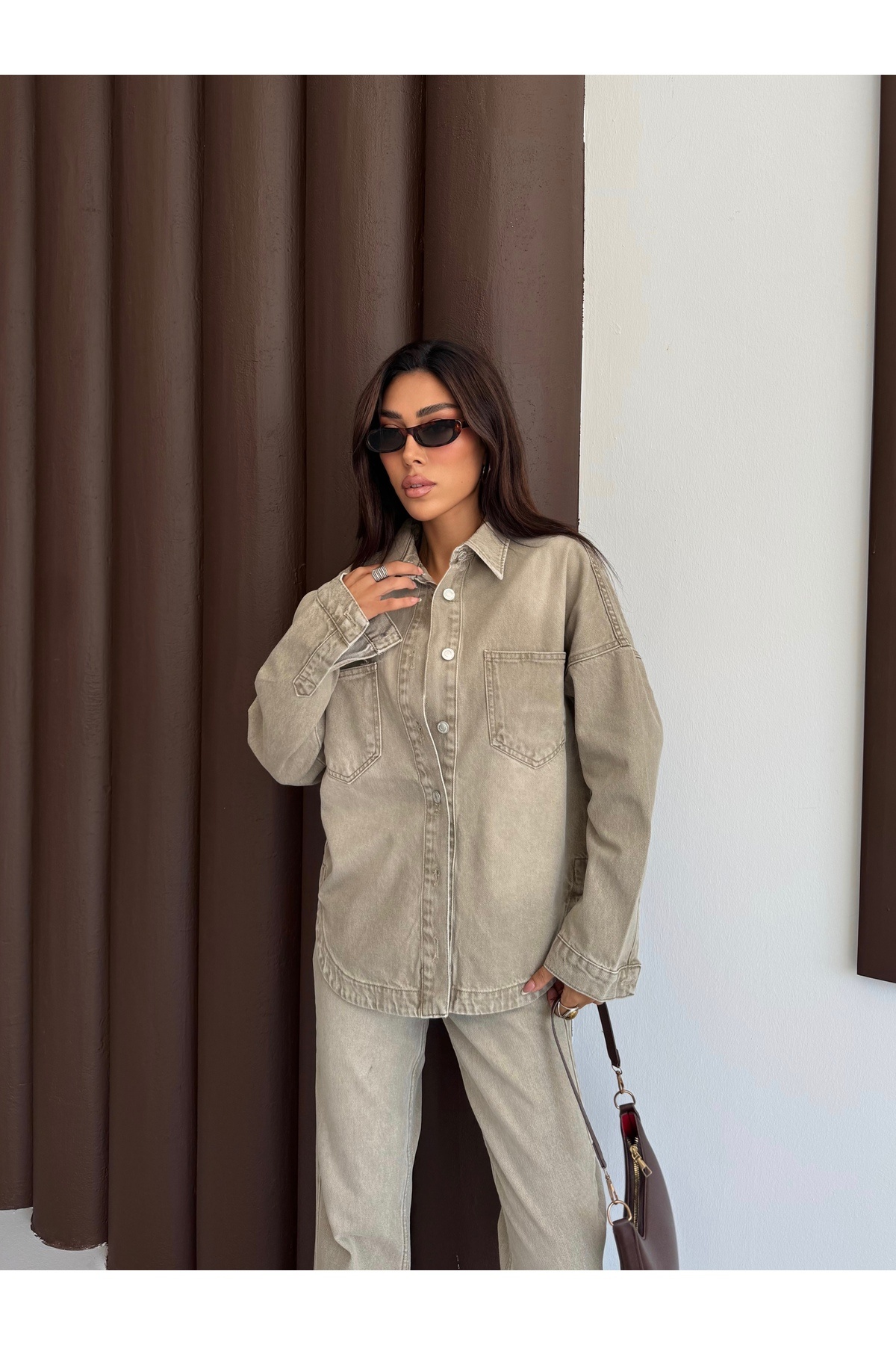 Kadın Jeans Uzun Düğmeli Cepli Krem Kot Ceket Kadın Jeans Uzun Düğmeli Cepli Krem Kot Ceket 160XRDN L