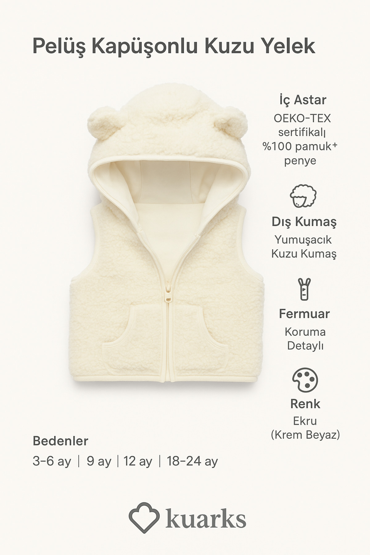 Unisex Peluş Bebek Yeleği Kapüşonlu Pamuk Penye Astarlı Ekru Çocuk Yelek Unisex Peluş Bebek Yeleği Kapüşonlu Pamuk Penye Astarlı Ekru Çocuk Yelek peluşyelek 18-24 AY