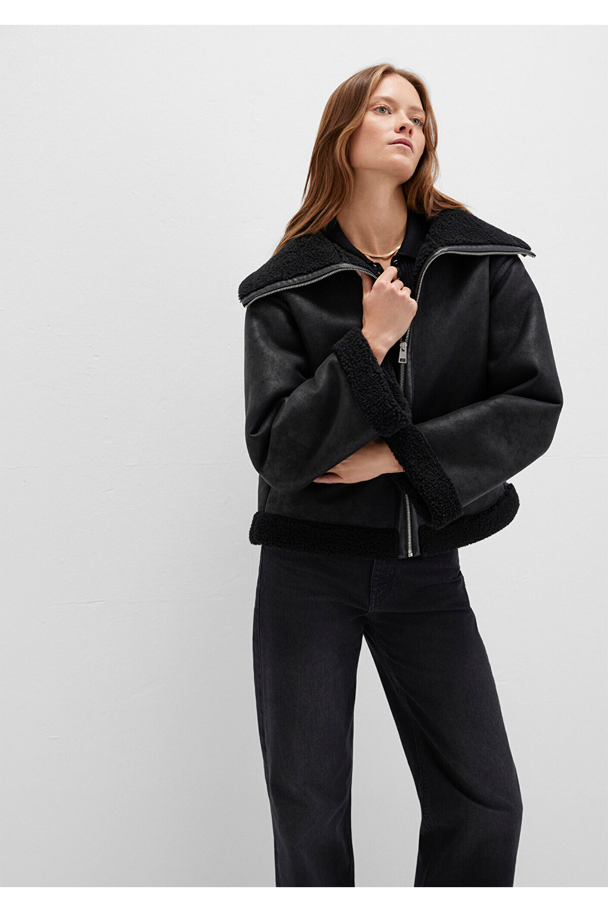 Regular Fit Suni Kürk Astarlı Mont E8542AX25WN Regular Fit Suni Kürk Astarlı Mont E8542AX25WN XL