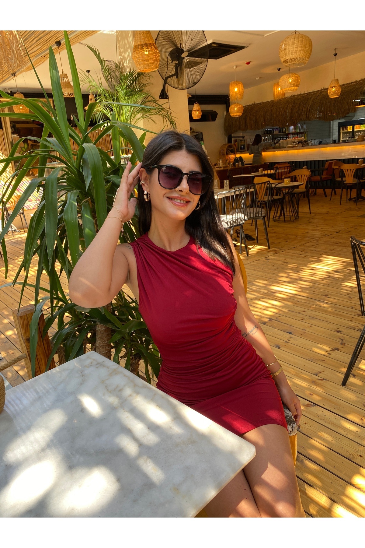 Bordo Sırt Detay Simli Elbise Bordo Sırt Detay Simli Elbise SİMLİUZUNKOL02 L
