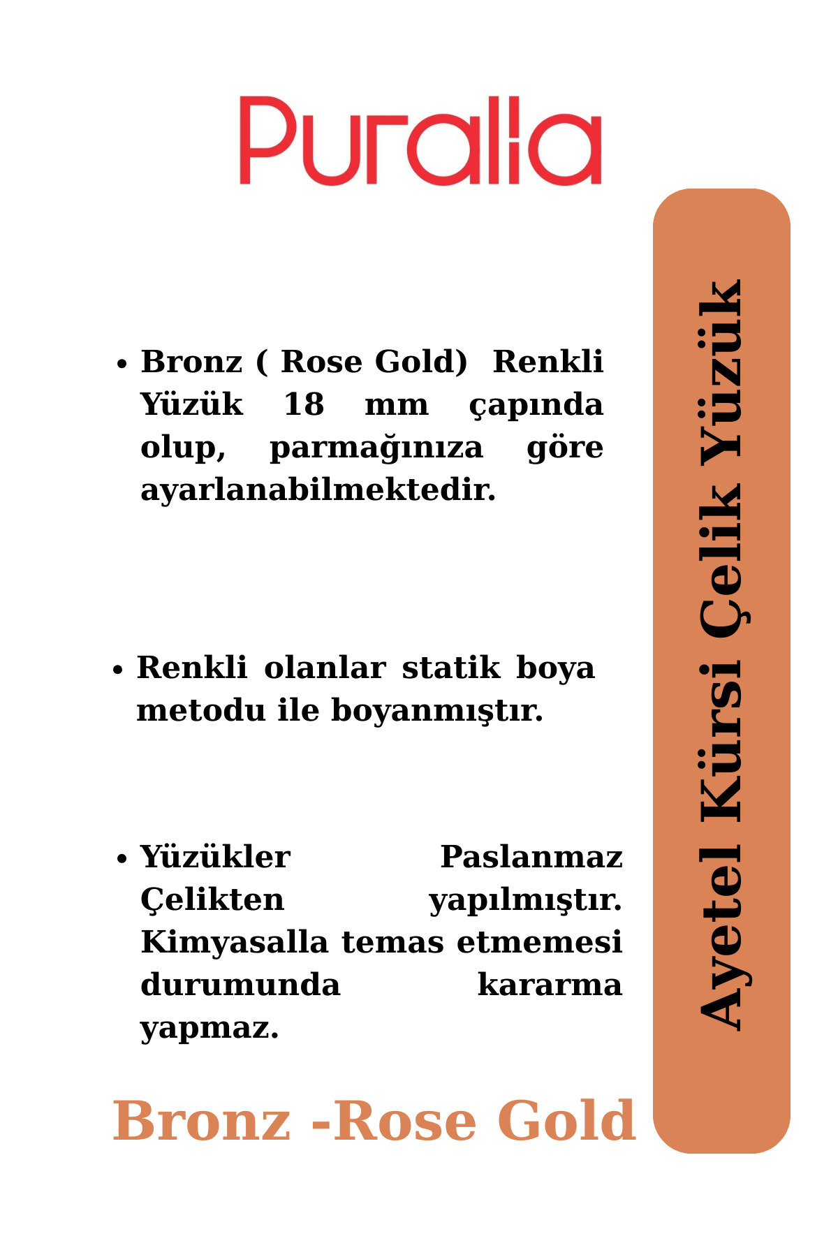 Ayetel Kürsi Çelik Erkek/Kadın Yüzük - Bronz ( Rose Gold) Renkli Ayetel Kürsi Çelik Erkek/Kadın Yüzük - Bronz ( Rose Gold) Renkli MSA005 M
