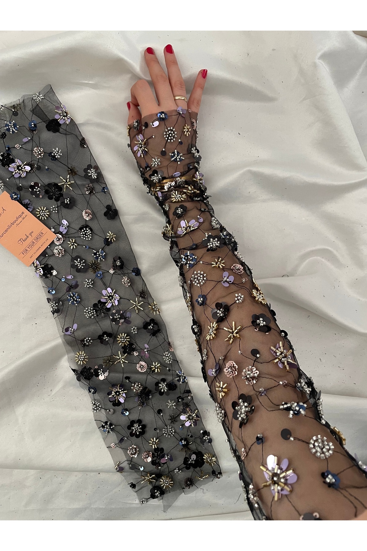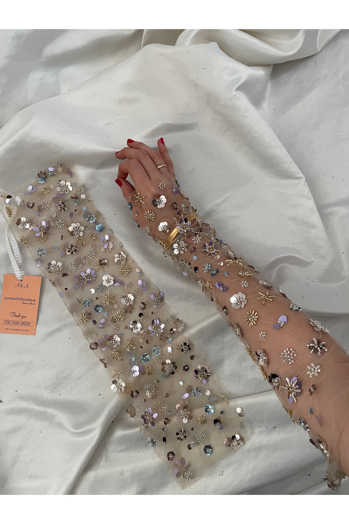 Taşlı boncuklu pul detaylı eldiven kolluk Taşlı boncuklu pul detaylı eldiven kolluk 92920-029393 S