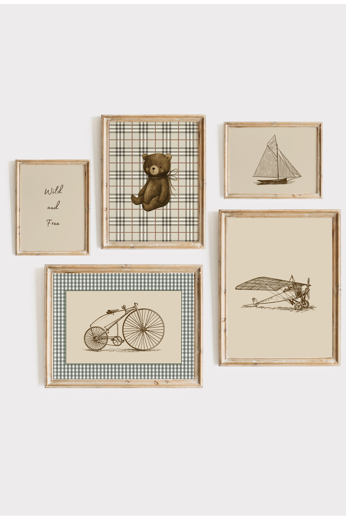 Vintage Yarışcı Ayı temalı Çerçeveli 5li Set Vintage Yarışcı Ayı temalı Çerçeveli 5li Set RACERBEAR 30 x 40