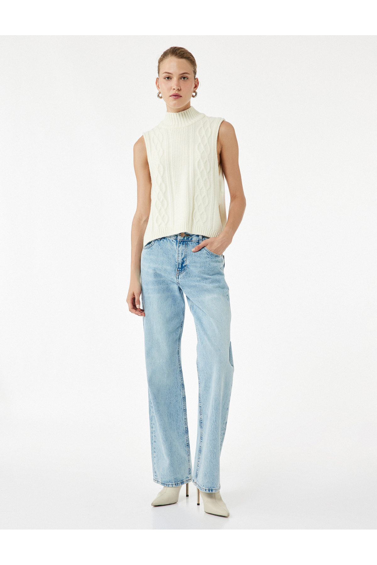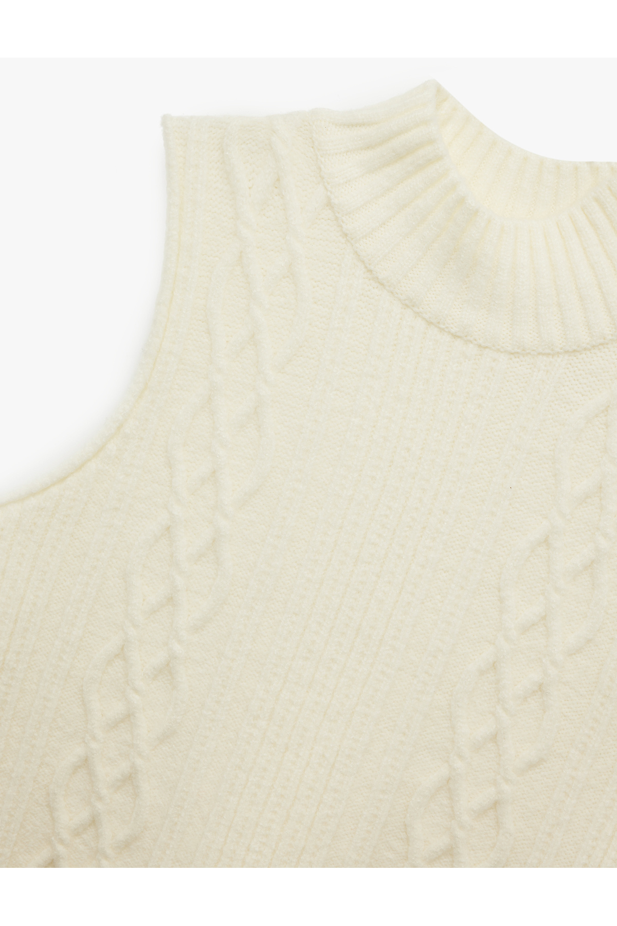 Dik Yaka Kolsuz Desenli Triko Süveter Dik Yaka Kolsuz Desenli Triko Süveter 6WAK20028HT XL