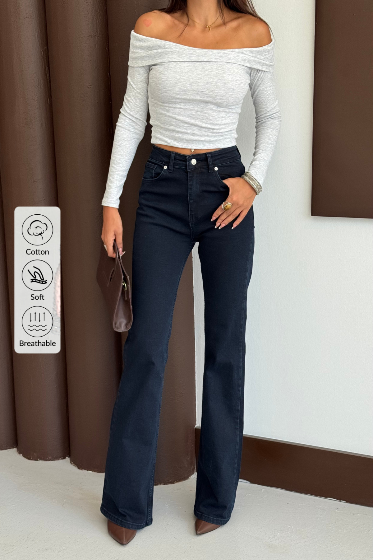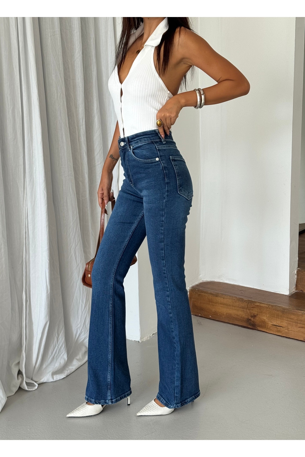Kadın Yüksek Bel İspanyol Paça Mavi Kot Pantolon Kadın Yüksek Bel İspanyol Paça Mavi Kot Pantolon 257İspanyol 42