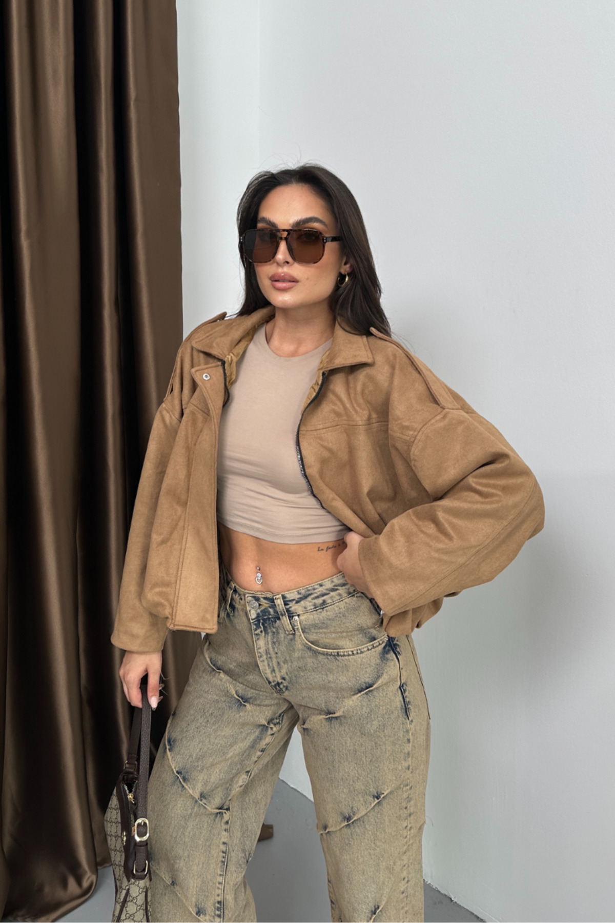 Kemerli Oversize Crop Deri Ceket Kemerli Oversize Crop Deri Ceket VR24658872 L