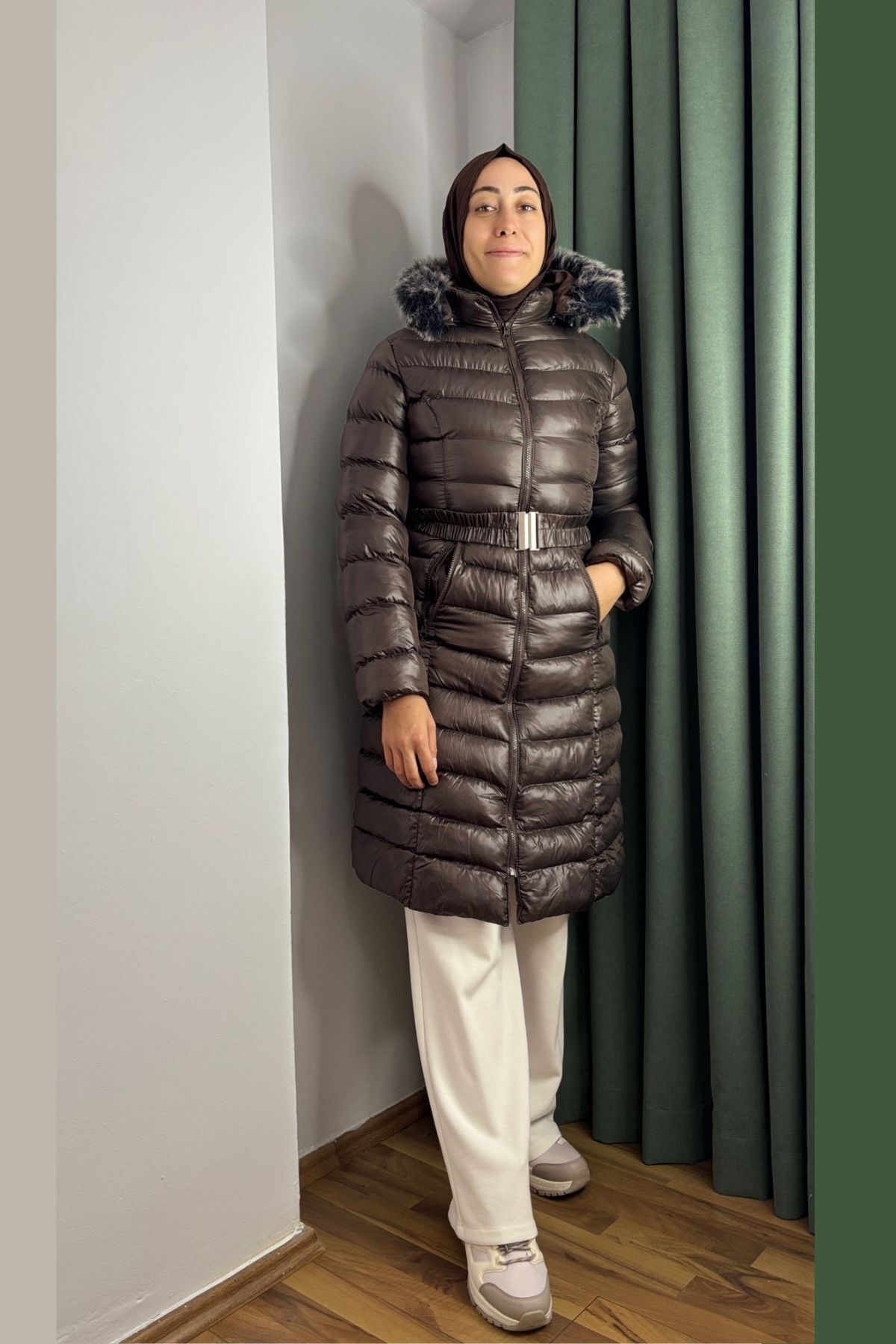 Kışlık Uzun Puffer Mont Kapüşonlu - Kadın Kışlık Uzun Puffer Mont Kapüşonlu - Kadın N202513EYL XL