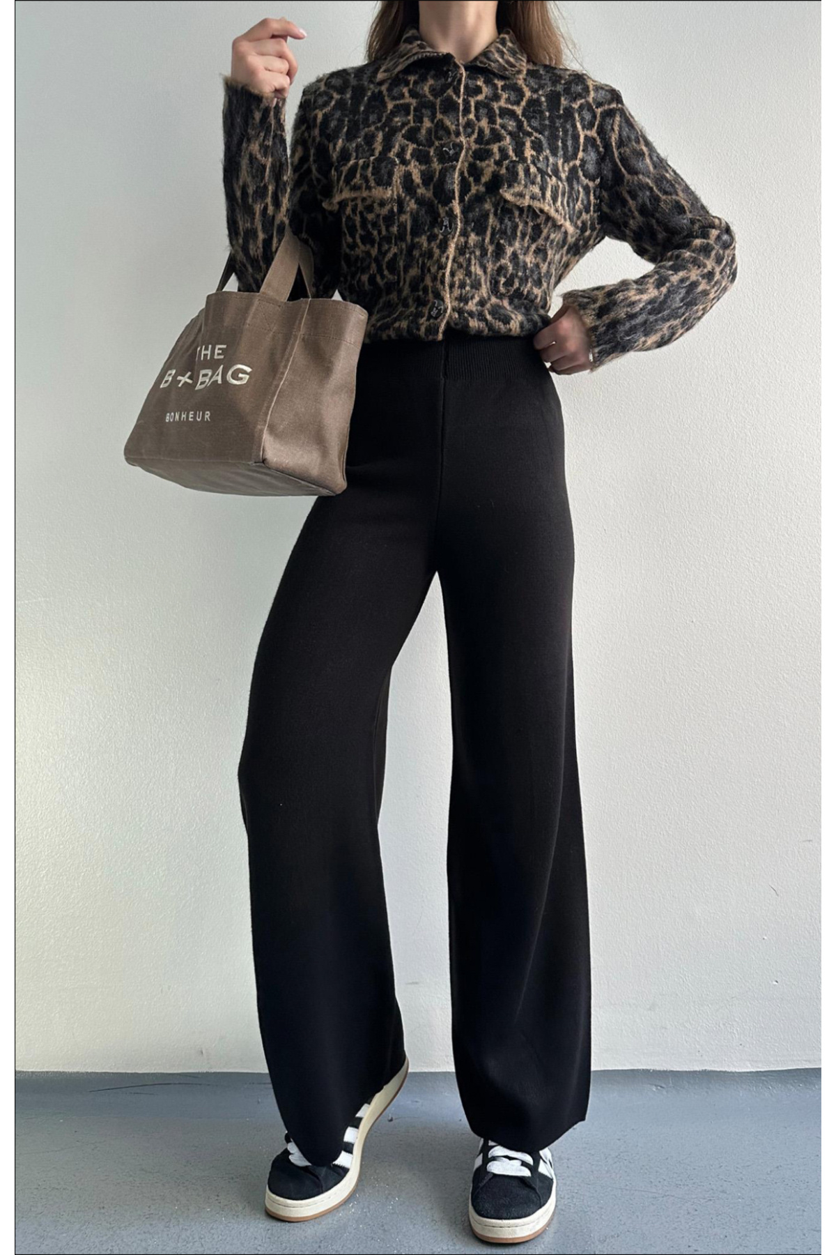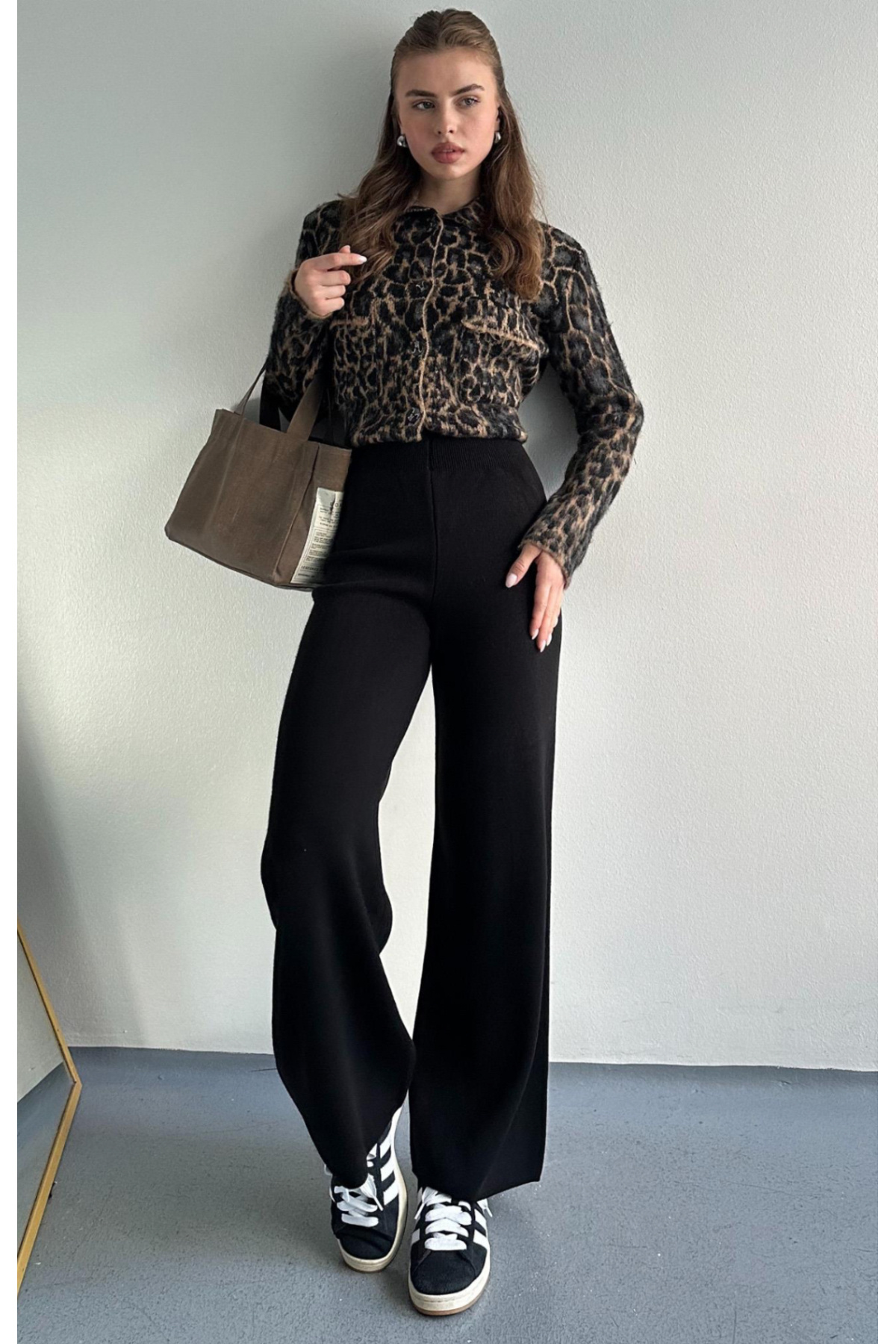 Kadın Yüksek Bel Lastikli Düz Palazzo Triko Pantolon Kadın Yüksek Bel Lastikli Düz Palazzo Triko Pantolon 4218BSO745 تک سایز