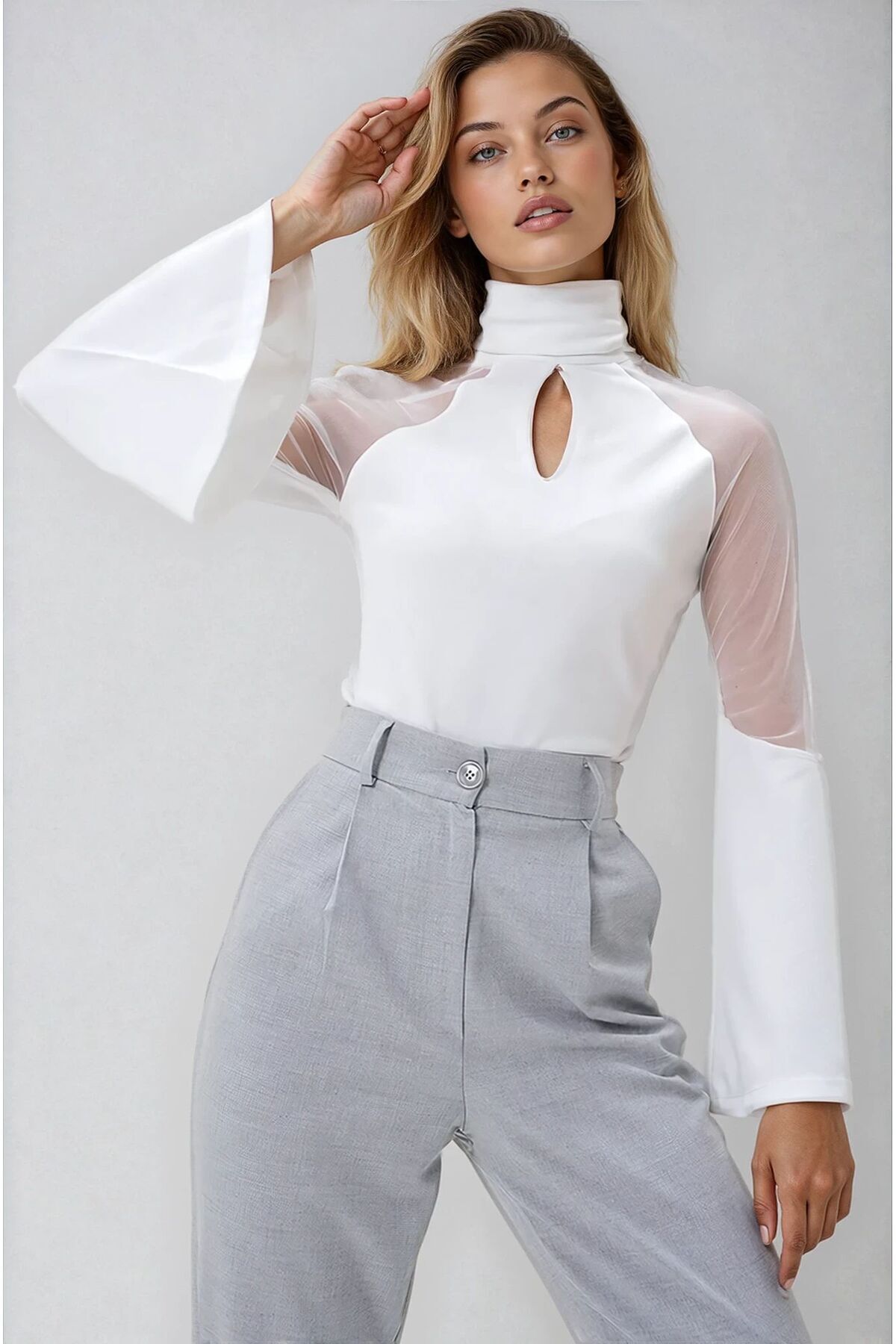 KADIN CUT OUT DETAYLI İSPANYOL KOL TÜL GARNİLİ BALIKÇI YAKA ESNEK KUMAŞ BLUZ KADIN CUT OUT DETAYLI İSPANYOL KOL TÜL GARNİLİ BALIKÇI YAKA ESNEK KUMAŞ BLUZ WTXBLZS25K0002101 2XL