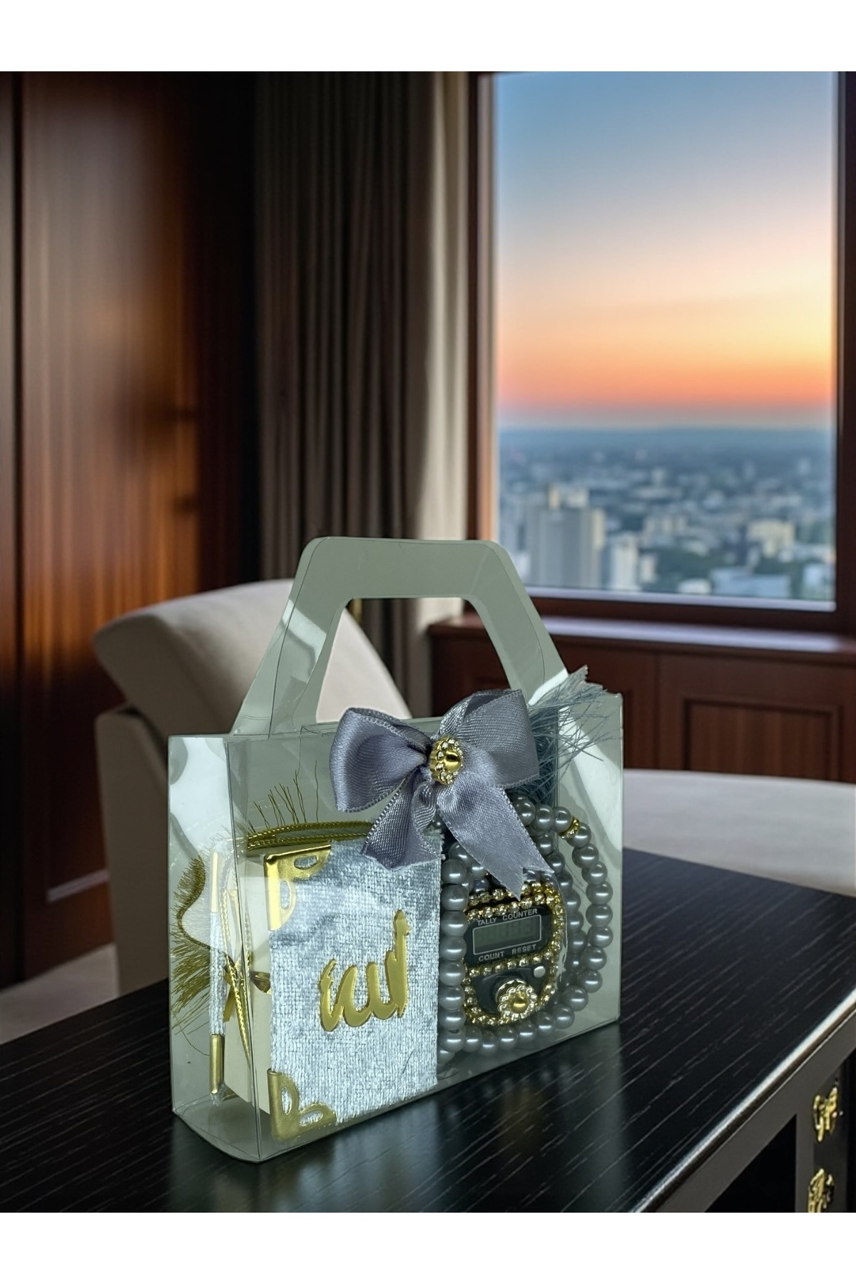 Çanta Görünümlü Kutu İçinde Mini Kuran, İnci Tesbih ve Taşlı Zikirmatik Hediyelik Set Çanta Görünümlü Kutu İçinde Mini Kuran, İnci Tesbih ve Taşlı Zikirmatik Hediyelik Set 007430 تک سایز