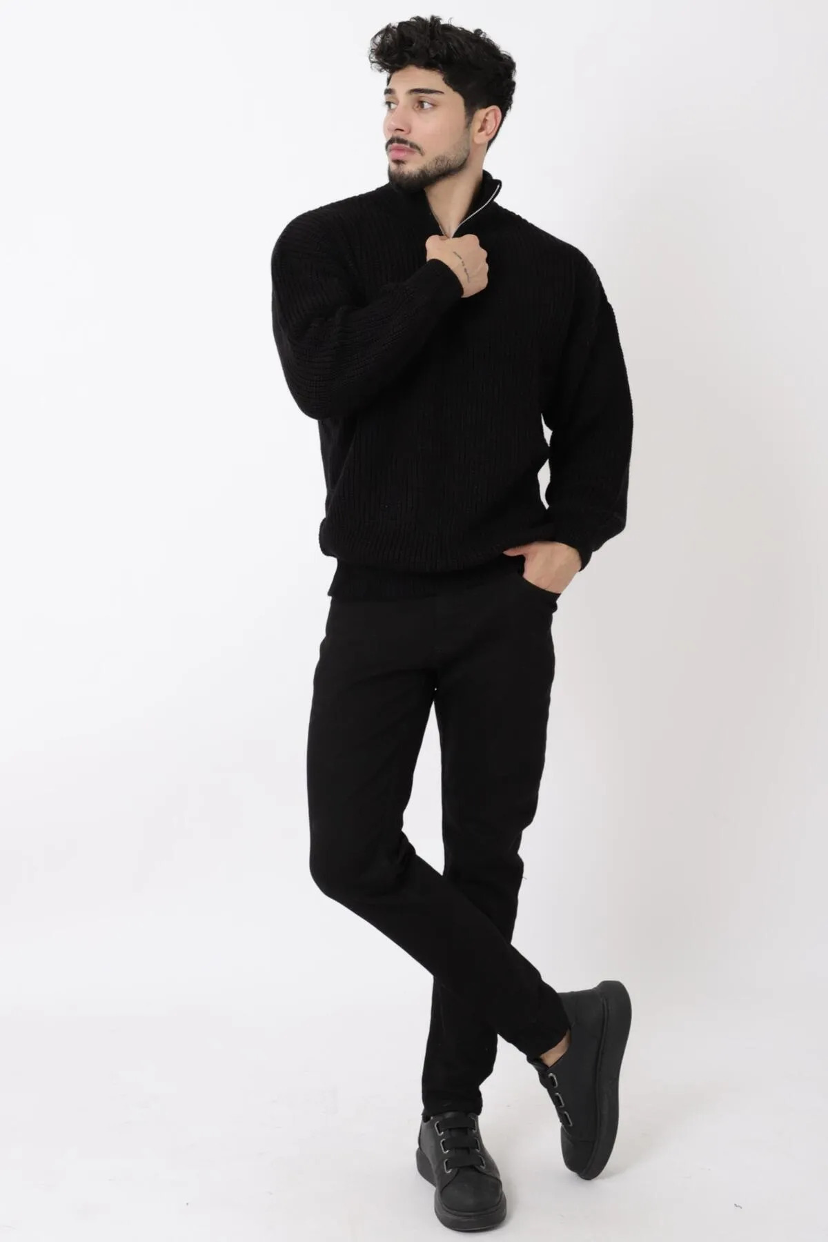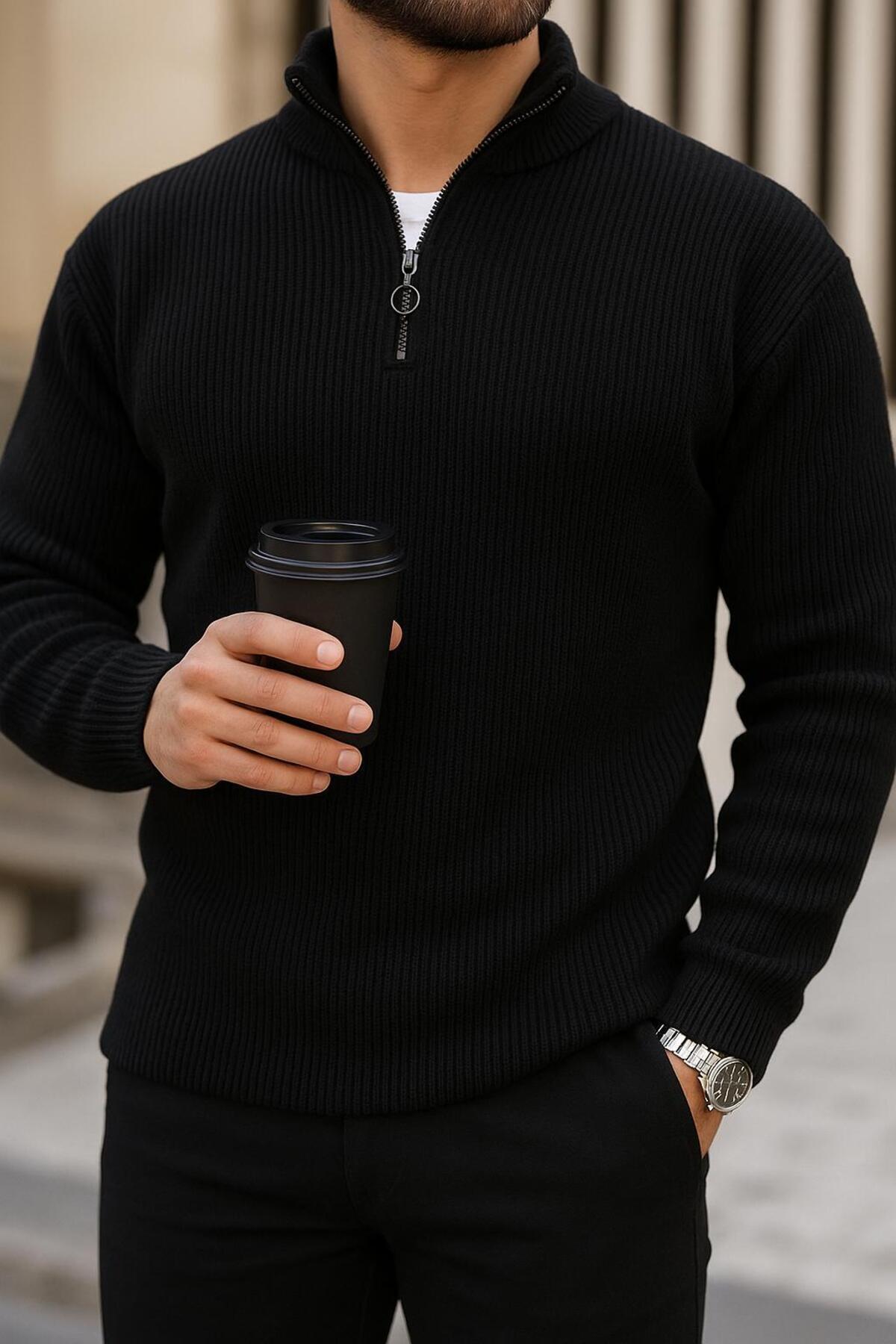 Yarım fermuarlı triko erkek kazak Yarım fermuarlı triko erkek kazak ft34 2XL