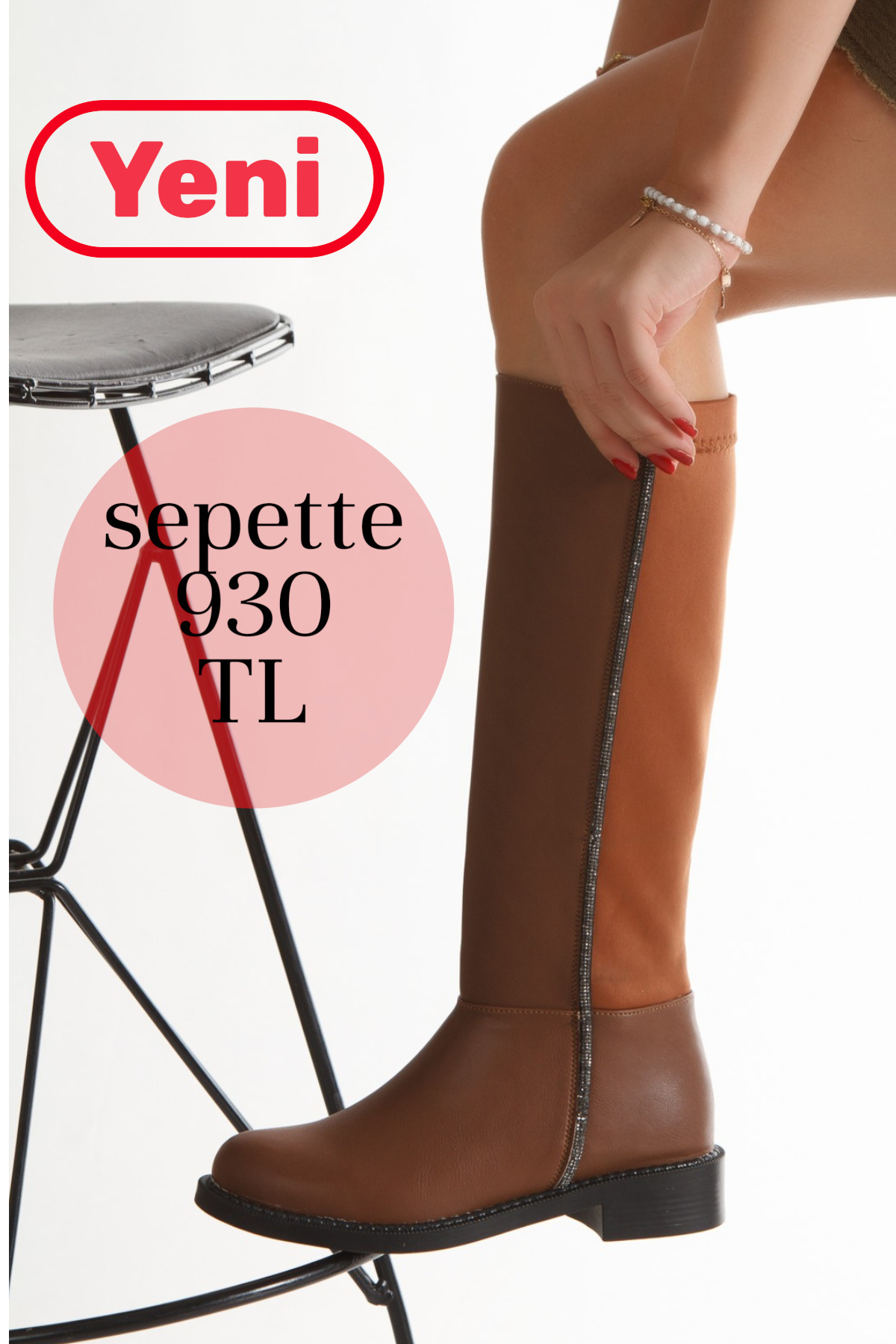 Günlük Düz Taban Çizme Arkası Streçli Taş Detaylı Günlük Düz Taban Çizme Arkası Streçli Taş Detaylı TAŞ001 40