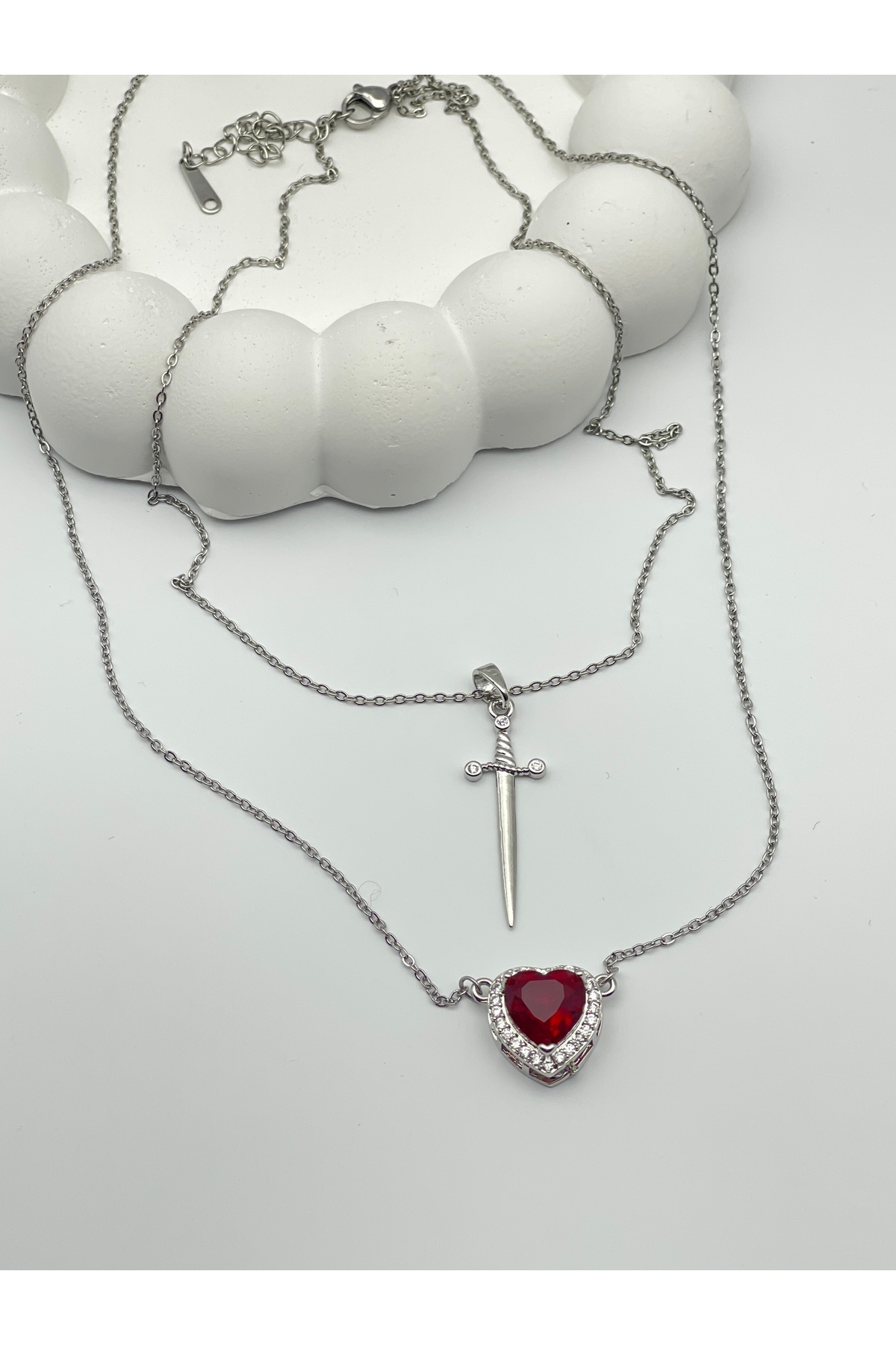 Kadın Gold Rengi Kılıç ve Kırmızı Kalp Taşlı Çelik Kolye Kadın Gold Rengi Kılıç ve Kırmızı Kalp Taşlı Çelik Kolye brm53197527 45 cm