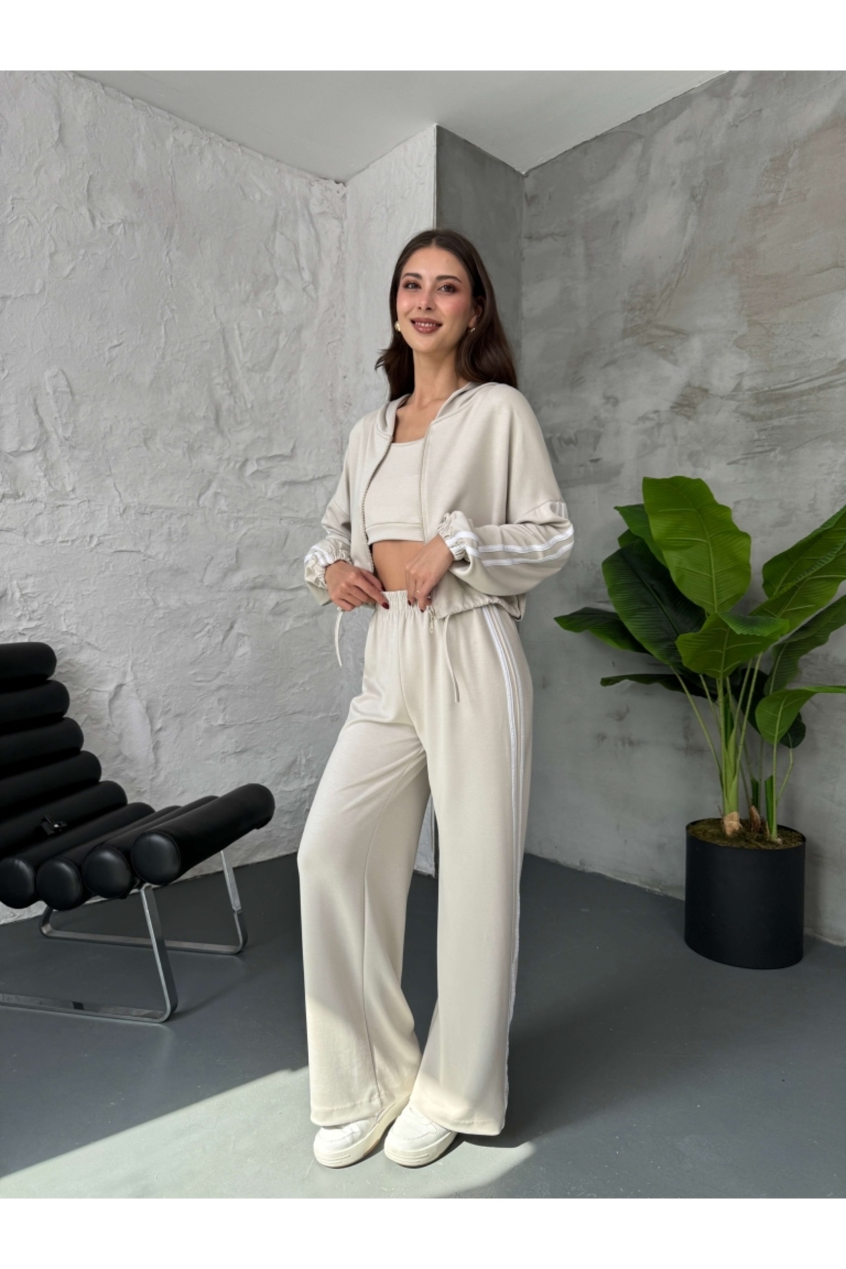 Kadın Lacivert Gümüş Şerit Detaylı Fermuarlı Geniş Paça Modal Kumaş Eşofman Takımı Kadın Lacivert Gümüş Şerit Detaylı Fermuarlı Geniş Paça Modal Kumaş Eşofman Takımı SWEMYŞRT1 L