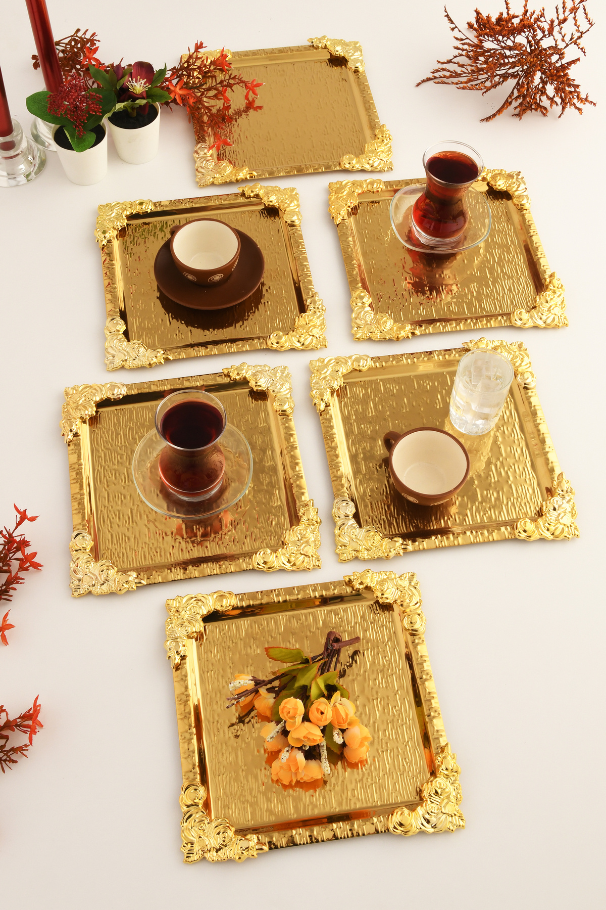 Rio Gold Paslanmaz Desenli Kare Köşesi Gold Çiçek Detaylı 6'lı Kahve Çay Sunumluk Servis Tepsi Rio Gold Paslanmaz Desenli Kare Köşesi Gold Çiçek Detaylı 6'lı Kahve Çay Sunumluk Servis Tepsi Rio6 تک سایز