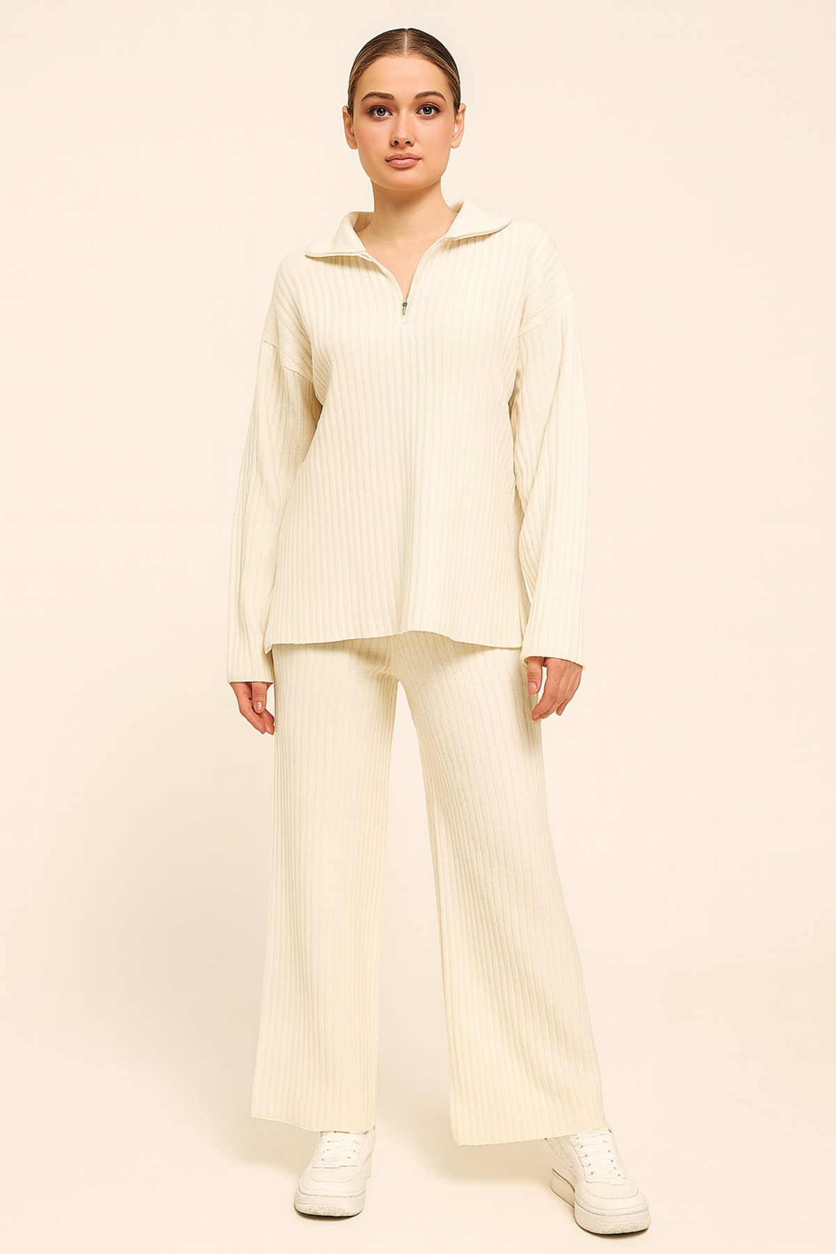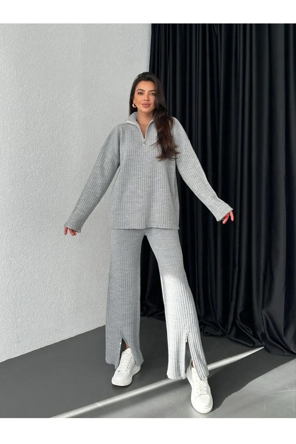 Kadın Fitilli Yaka Fermuarlı Paçası Yırtmaçlı Yanlardan Fermuarlı Triko Takım yeni sezon kombini Kadın Fitilli Yaka Fermuarlı Paçası Yırtmaçlı Yanlardan Fermuarlı Triko Takım yeni sezon kombini kodeakadın XL