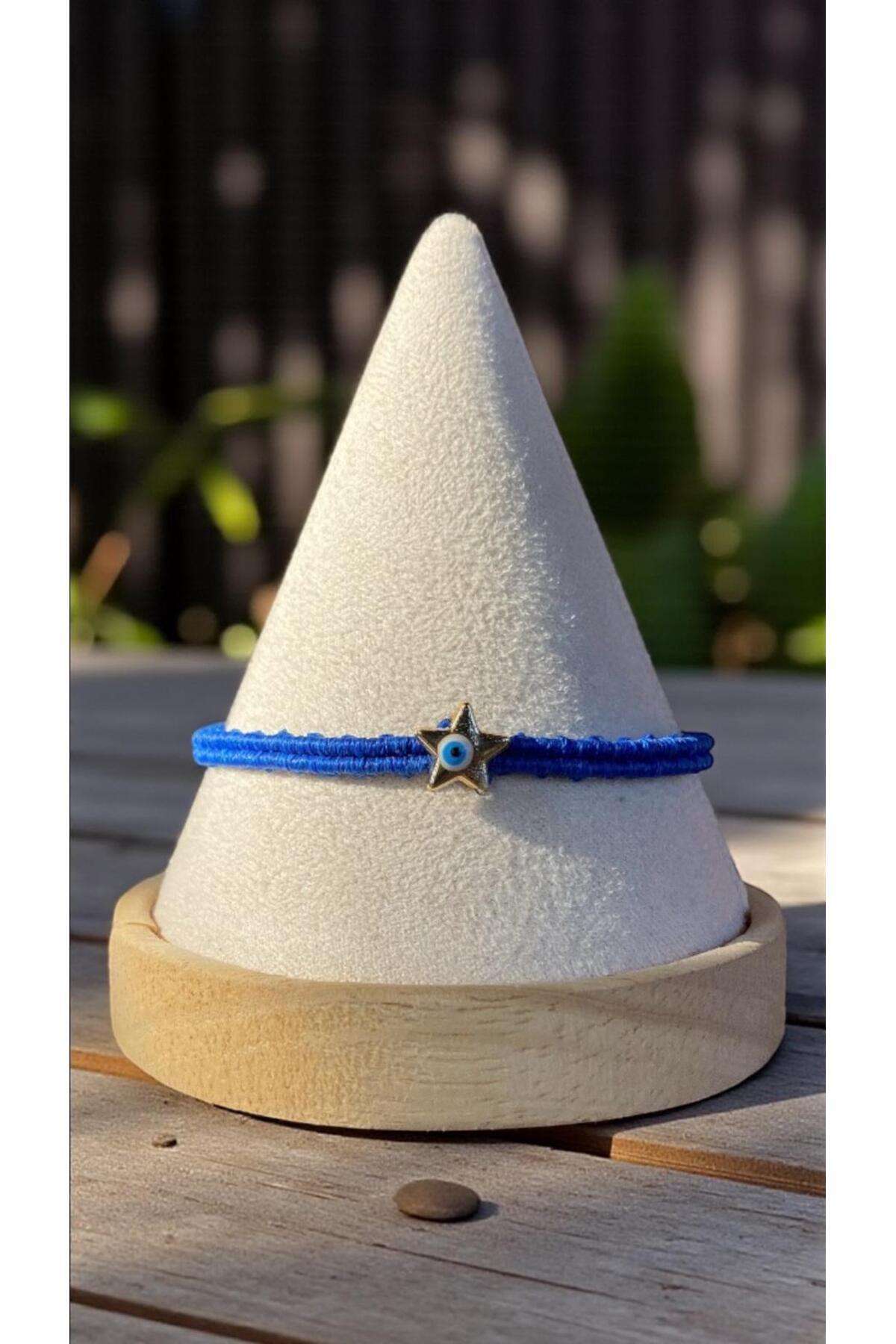 BENSEİ Altın Kaplama Nazar Yıldız Aksesuarlı, Saks Mavisi Mikro Düğüm Bileklik BENSEİ Altın Kaplama Nazar Yıldız Aksesuarlı, Saks Mavisi Mikro Düğüm Bileklik BS.0177 تک سایز