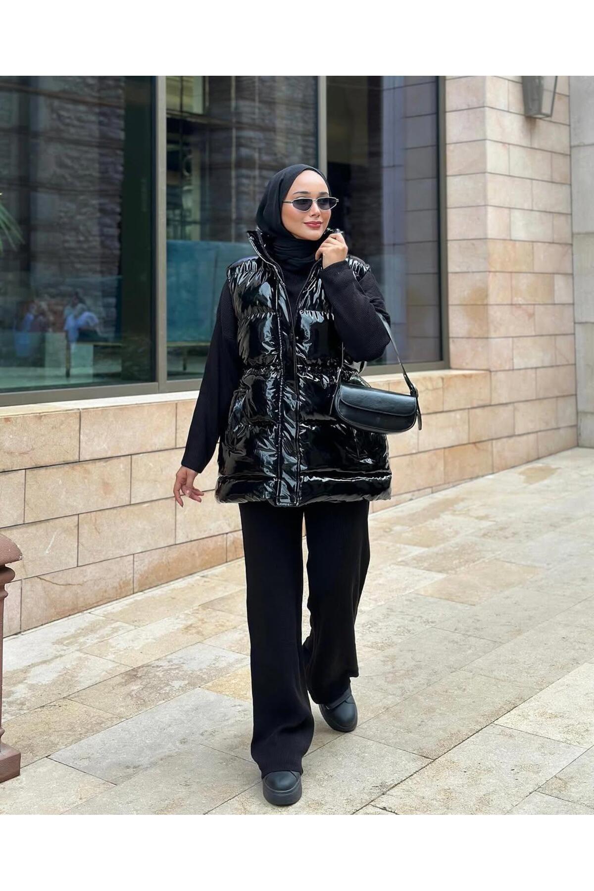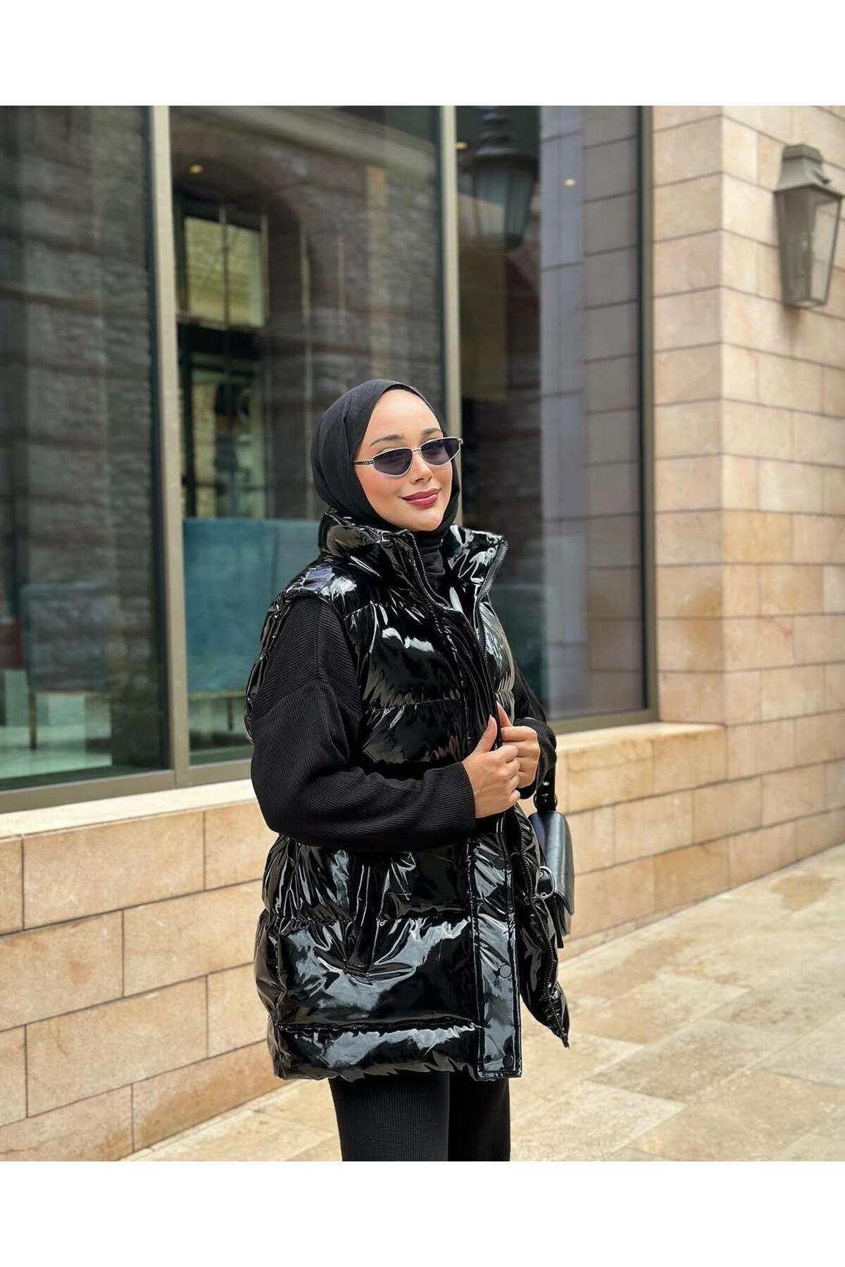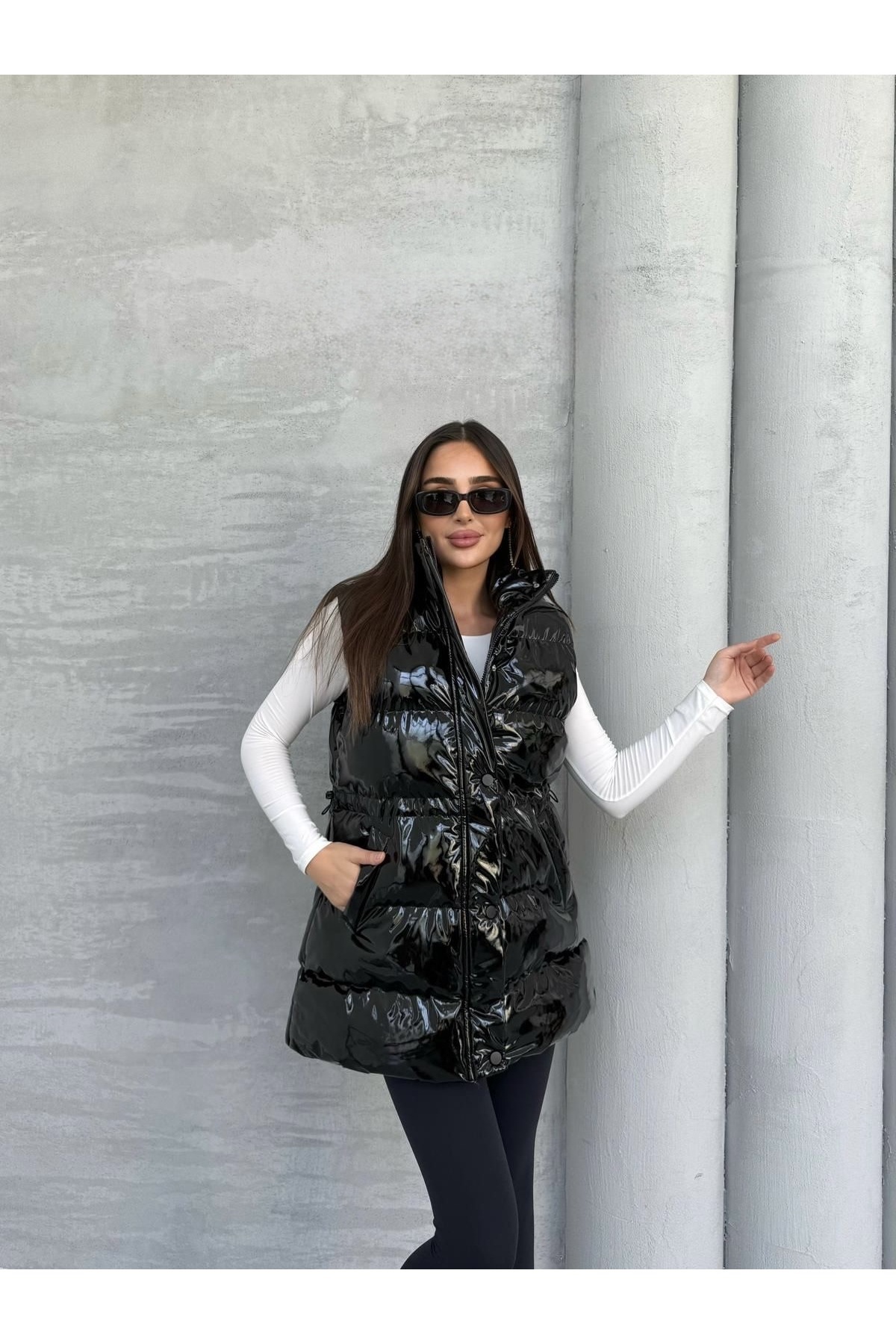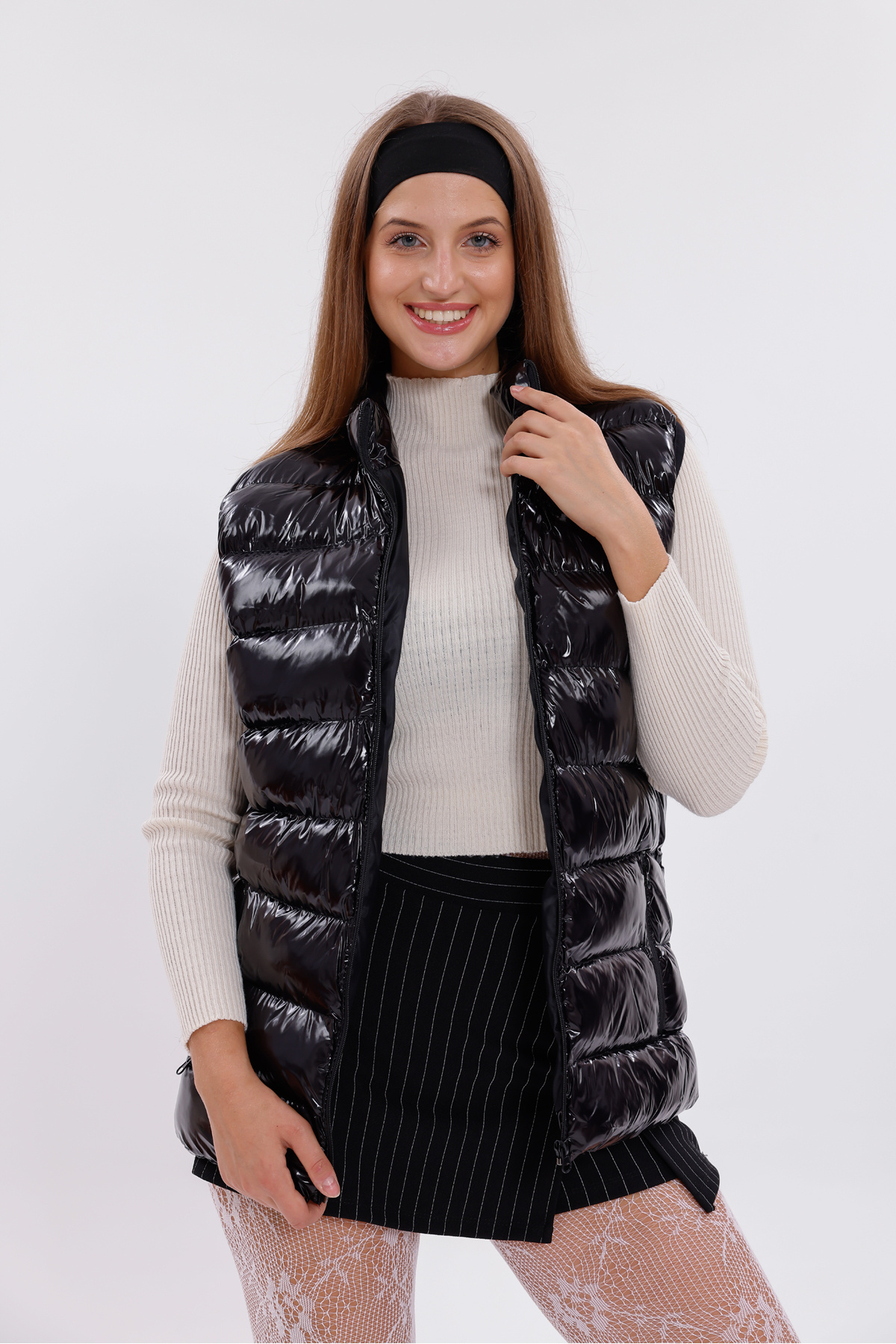 Kadın Siyah Parlak Fermuarlı Çıt Çıtlı Cepli Şişme Yelek Kadın Siyah Parlak Fermuarlı Çıt Çıtlı Cepli Şişme Yelek 7181 42