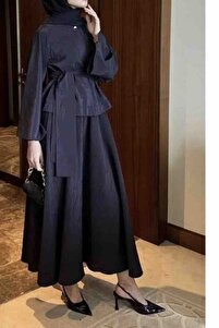 Üstü Tek Düğmeli Bağcıklı Eteği Lastikli Kraş Takım Üstü Tek Düğmeli Bağcıklı Eteği Lastikli Kraş Takım HJB124816034 L/XL