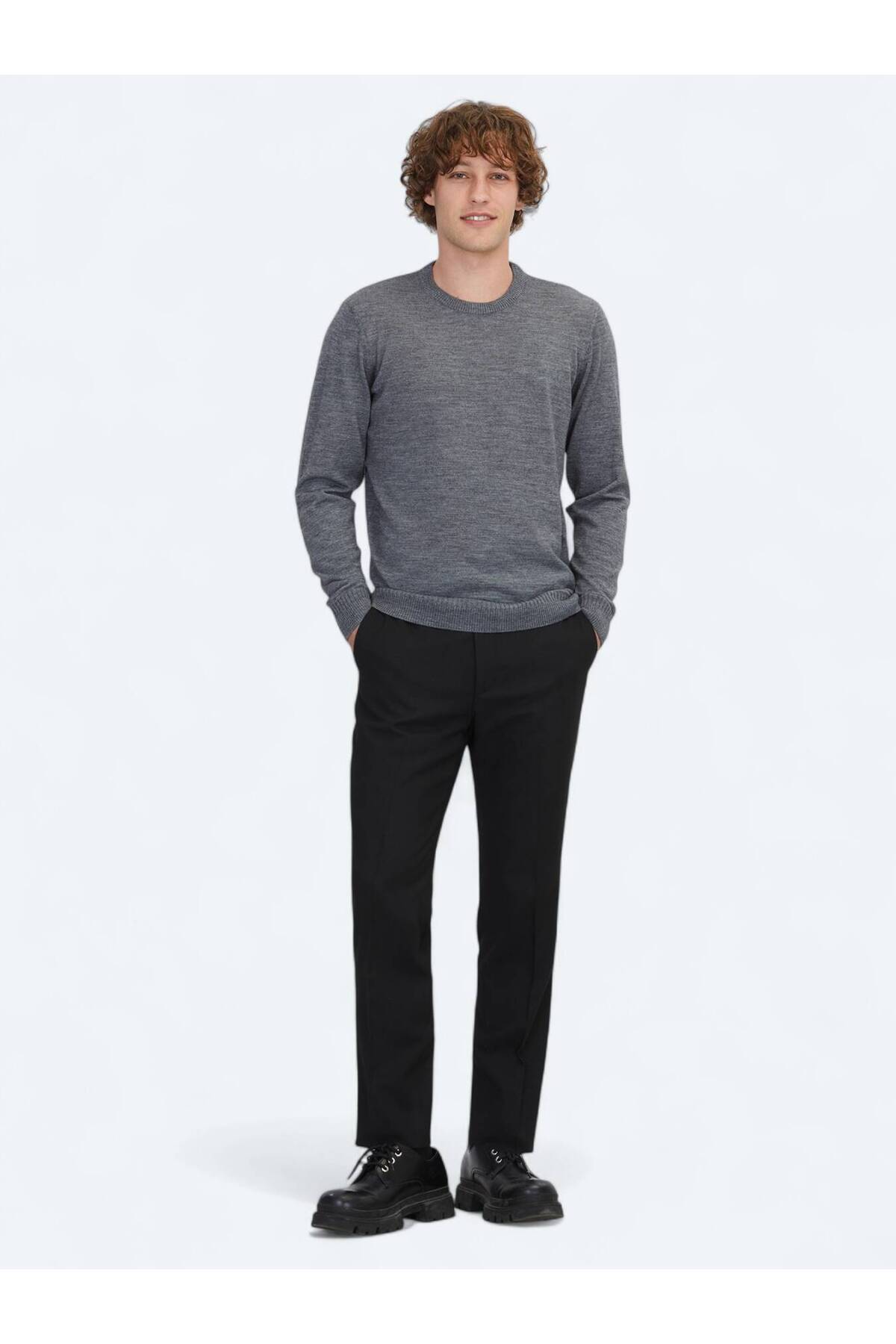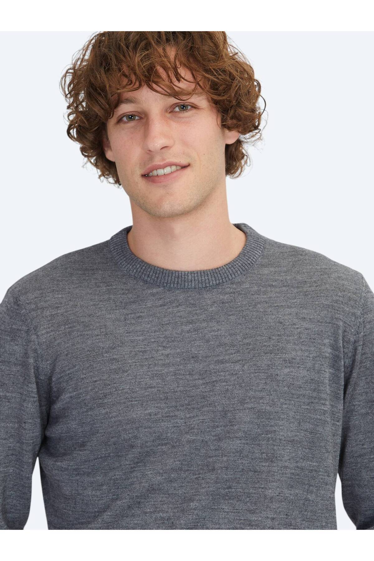 Gri Bisiklet Yaka Jakarlı Yün Karışımlı Triko Kazak Gri Bisiklet Yaka Jakarlı Yün Karışımlı Triko Kazak 51113 3XL
