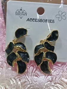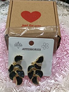 Siyah Yapraklar Gold Küpe Siyah Yapraklar Gold Küpe KOR.1003 تک سایز