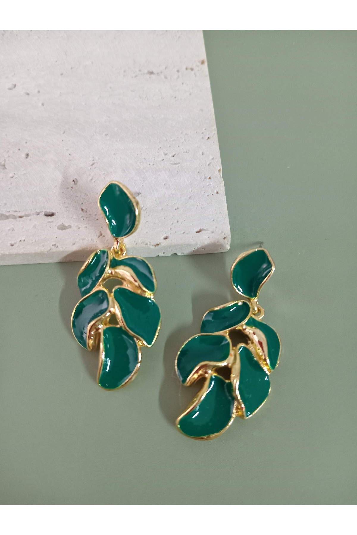 Yeşil Yapraklar Gold Küpe Yeşil Yapraklar Gold Küpe KOR.1003 تک سایز