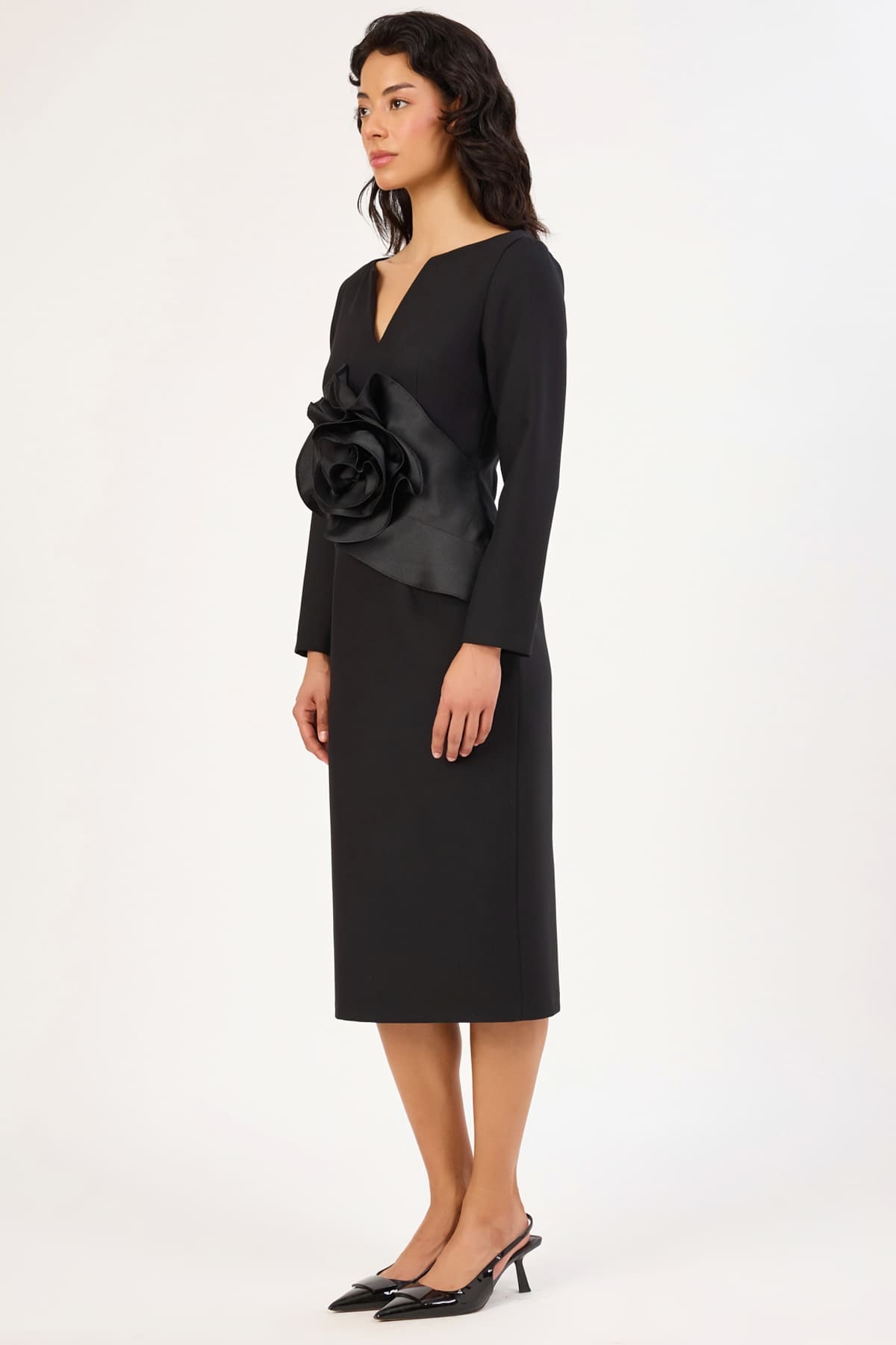 Çicek detaylı likralı midi elbise Çicek detaylı likralı midi elbise 352116078 44